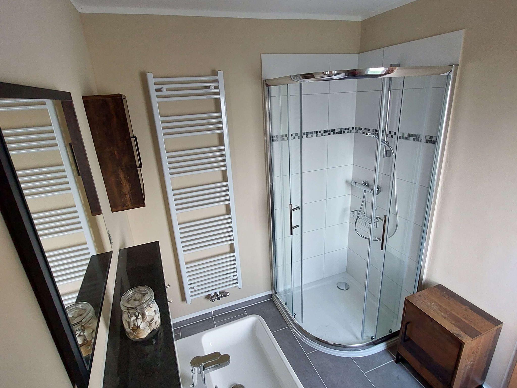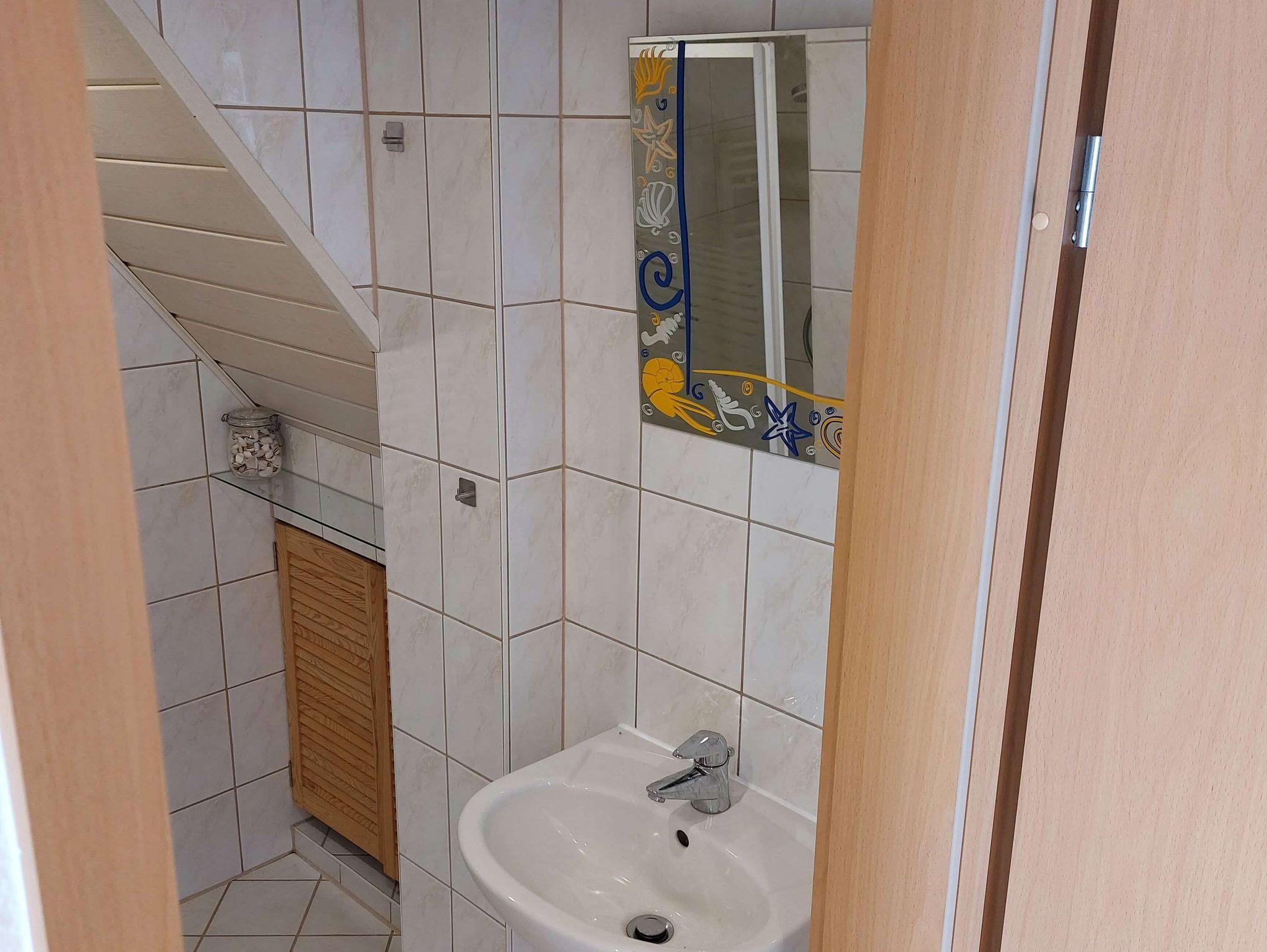 Im Erdgeschoss finden Sie die Diele, ein Badezimmer, die voll ausgestattete Küche mit Essbereich sowie ein einladendes Wohnzimmer. Im Dachgeschoss warten zwei Schlafbereiche auf Sie, während das dritte Schlafzimmer sowie ein weiteres Bad im Souterrain liegen.