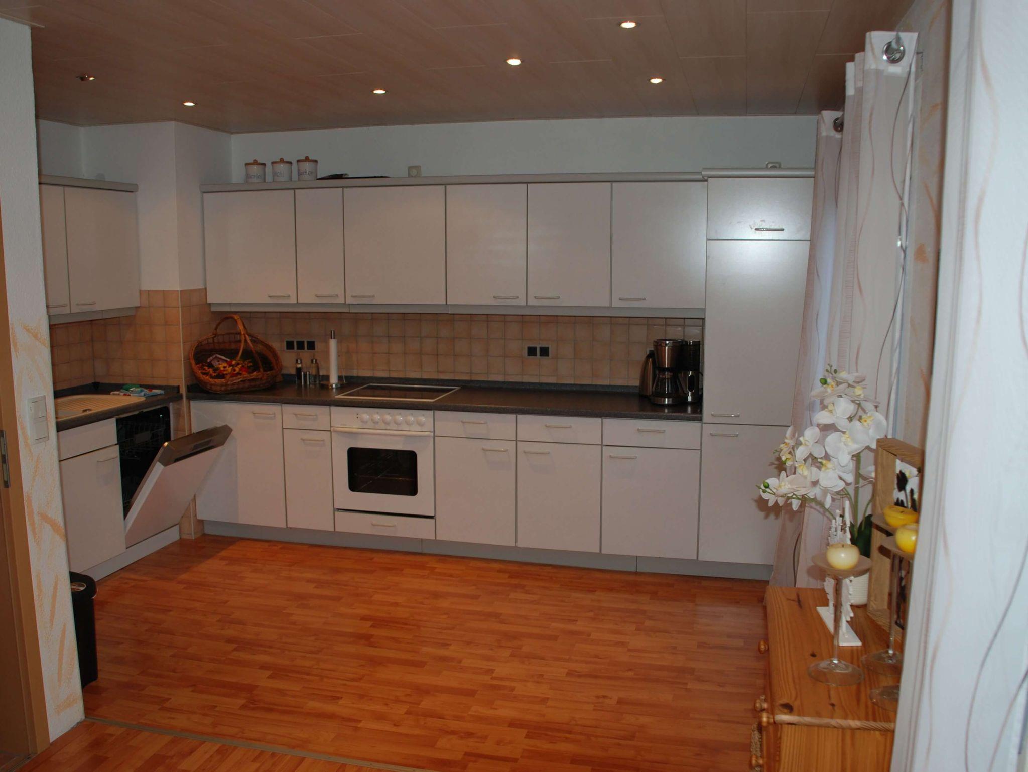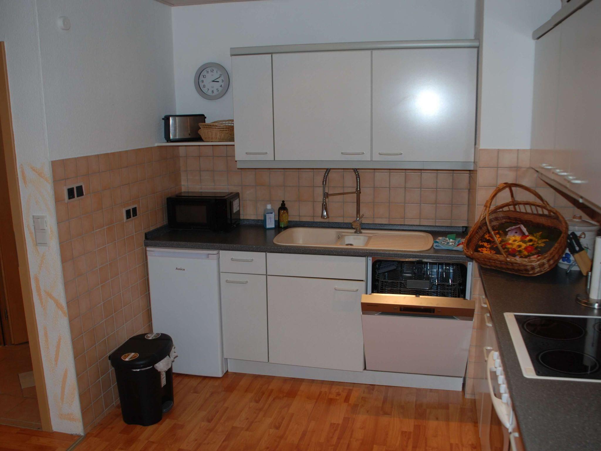 Komplett ausgestattete Küche mit Geschirrspüler, Gefrierschrank (3 Fächer) und Mikrowelle