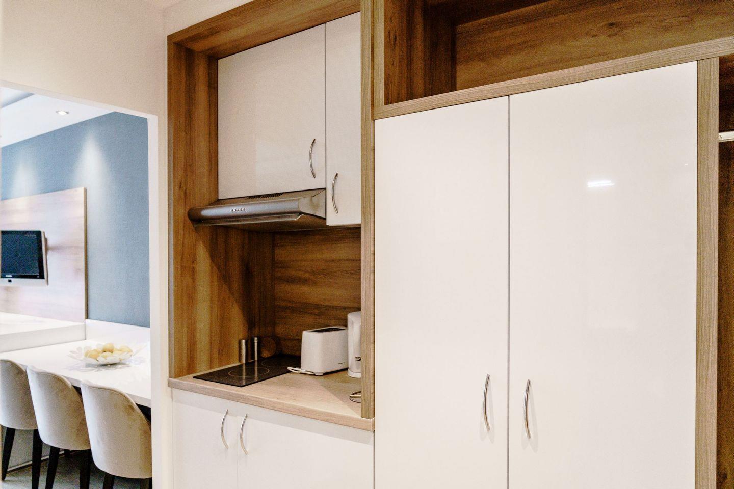 Die voll ausgestatteten Ferienwohnungen sind geprägt von einer harmonischen Farbkombination in der Sie sich garantiert wohlfühlen werden und es Ihnen an nichts fehlen wird. Vom Balkon aus genießen Sie eine Panoramaaussicht, wahlweise auf den See oder den berühmten Bocksberg. Die bequemen Balkonmöbel laden zum Verweilen mit ihren Liebsten ein.