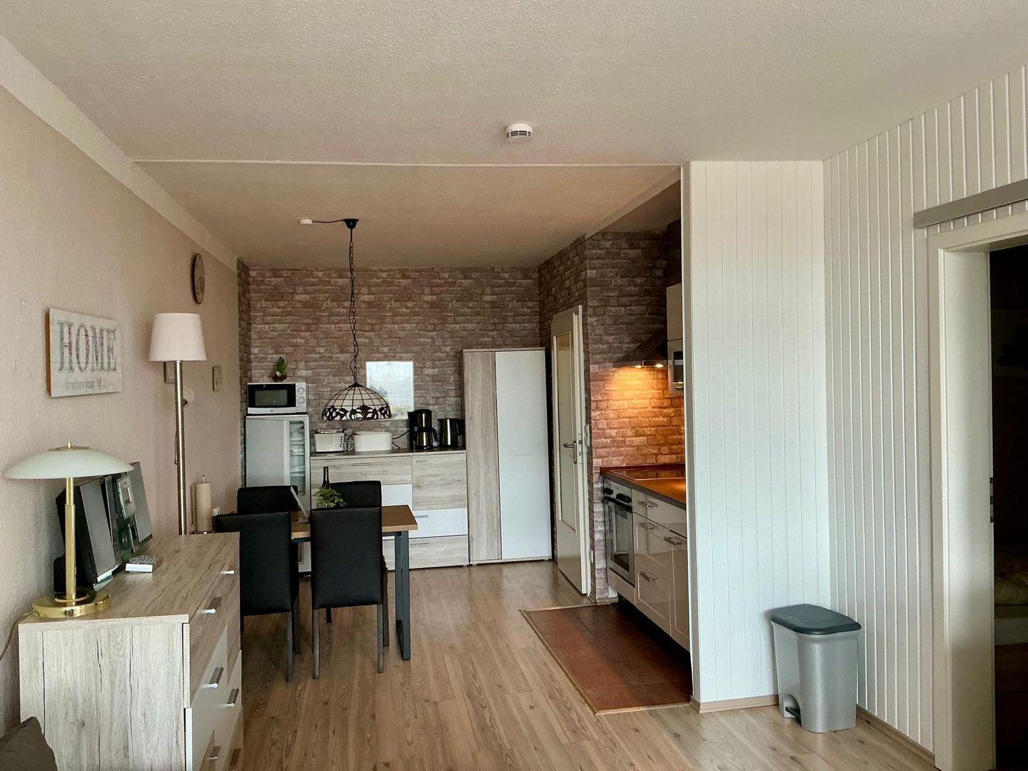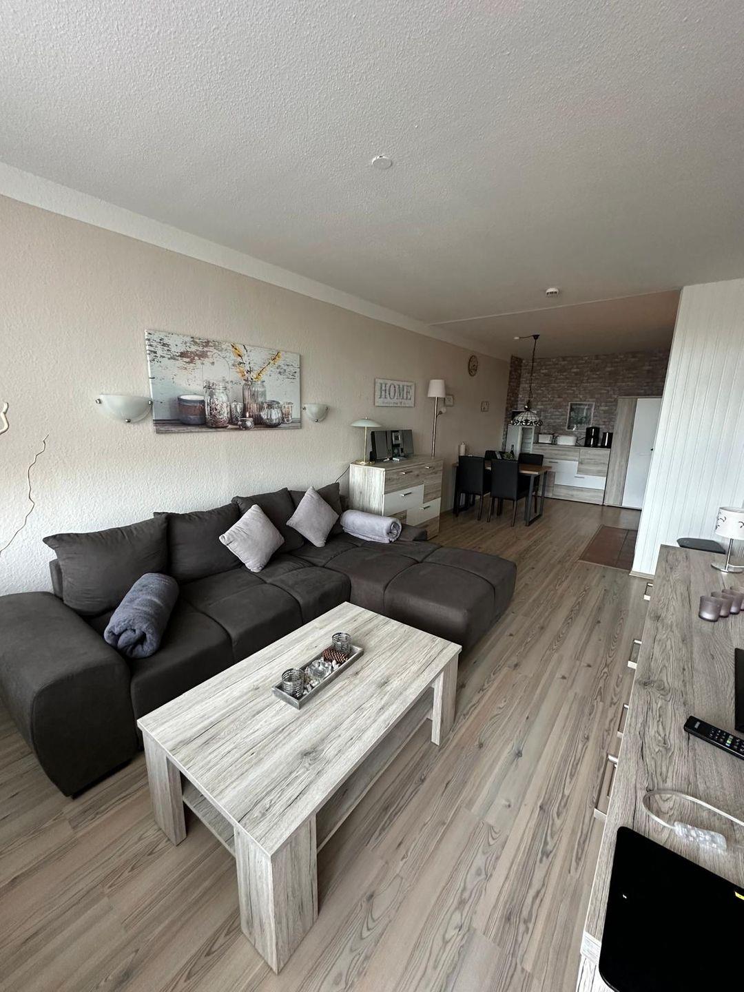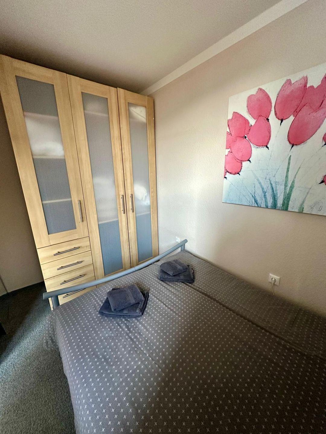 Die Wohnung verfügt über zwei komfortable Schlafzimmer, die mit hochwertiger Bettwäsche ausgestattet sind und zum Entspannen einladen. In der offenen Küche, die zum Wohnzimmer übergeht, finden Sie alles, was Sie benötigen – von modernen Küchenutensilien über eine Kaffeemaschine und einen Toaster bis hin zu einem Backofen und einem Kühlschrank mit Gefrierfach. Ob ein richtiges Frühstück oder ein gemütliches Abendessen, Sie können Ihre kulinarischen Fähigkeiten hier voll entfalten!