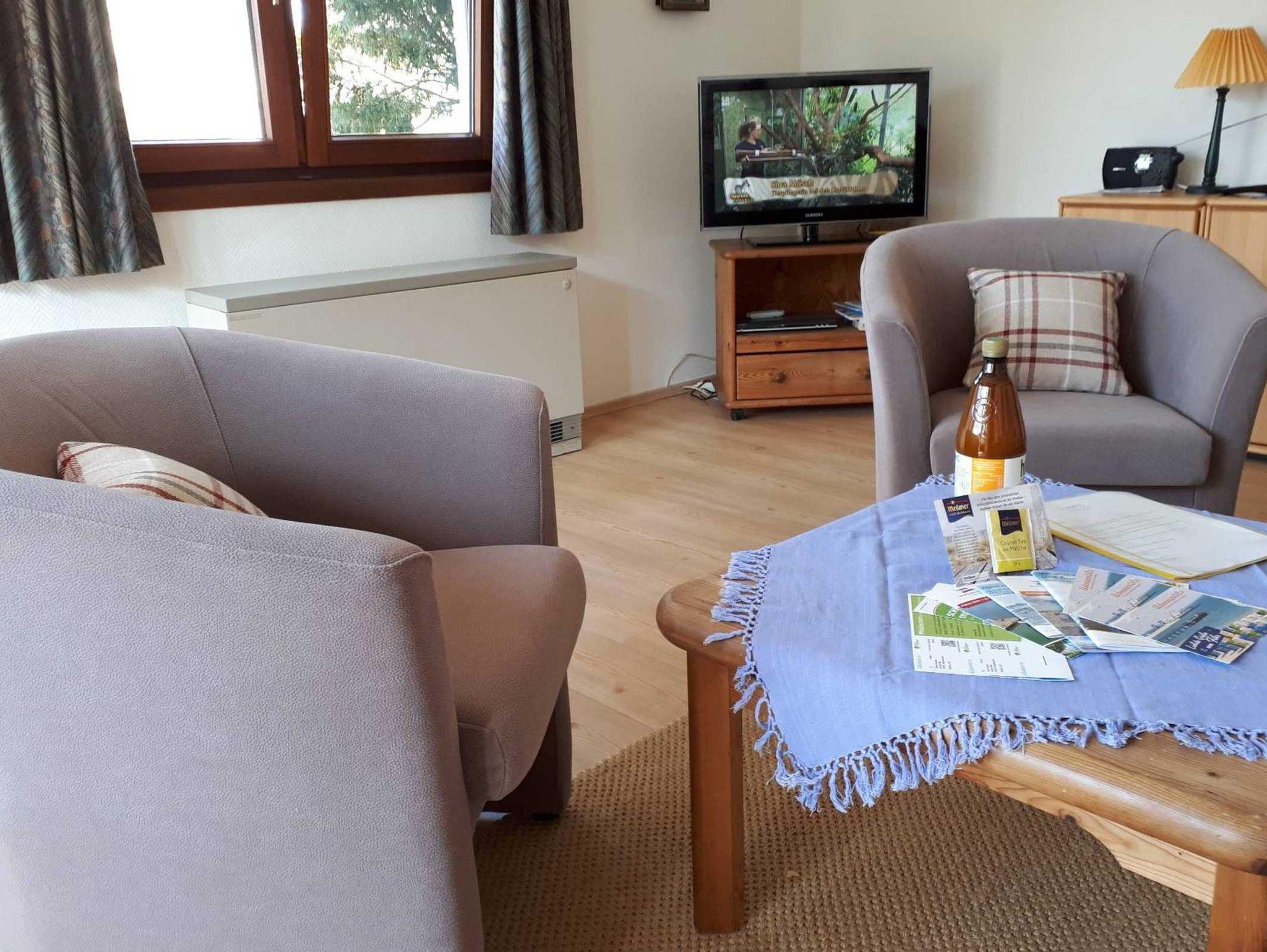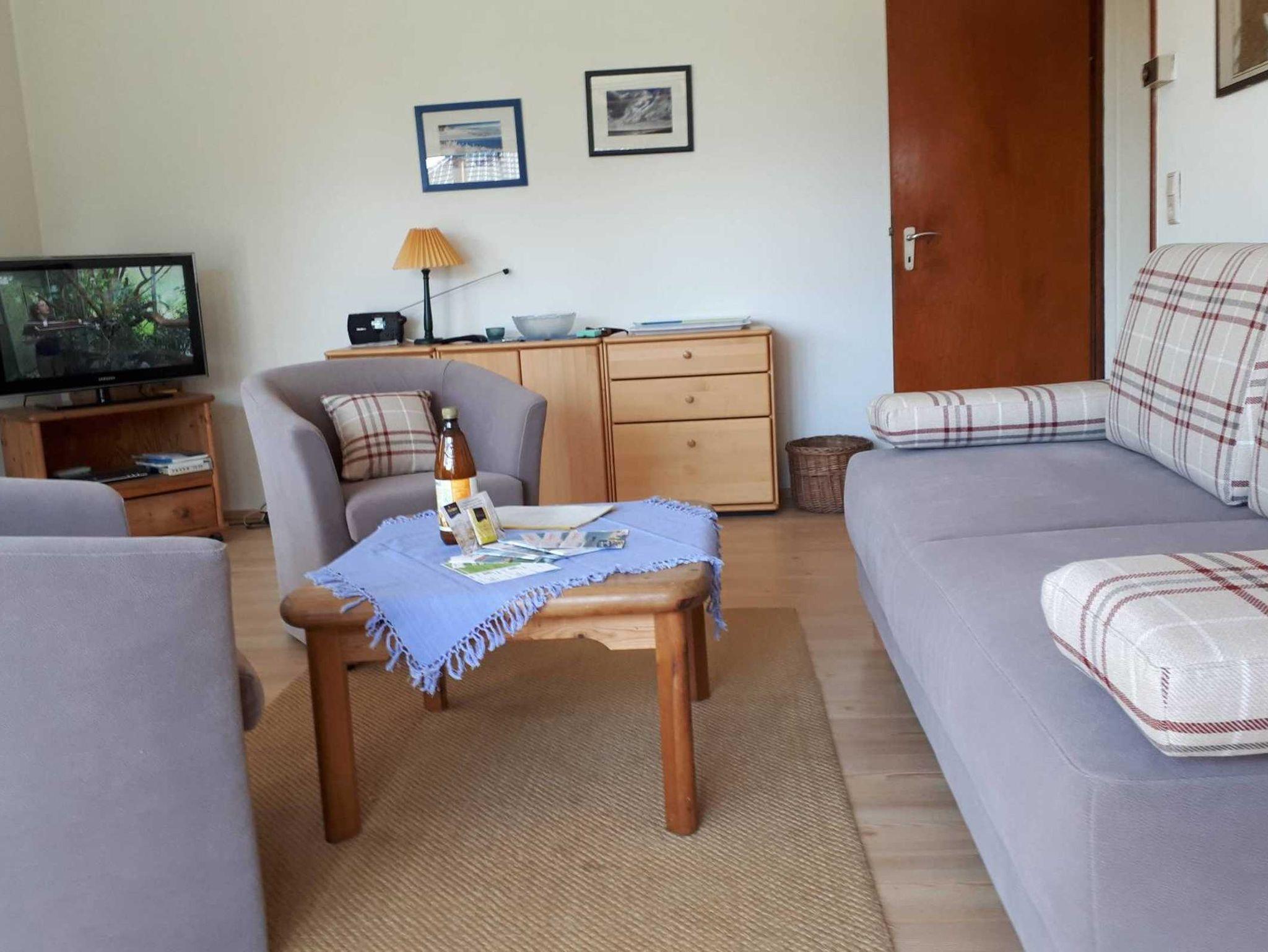 Ein bis zwei weitere Schlafgelegenheiten bietet eine Schlafcouch im Wohnzimmer.