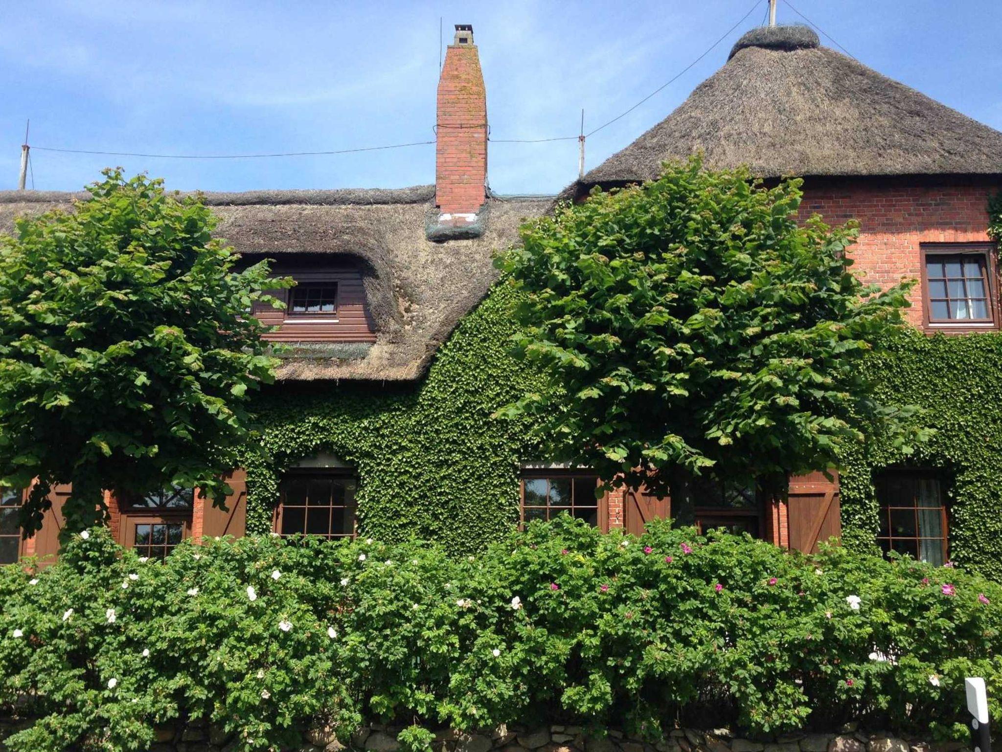 Dieses wunderschöne Reetdachhaus mit zwei Ferienwohnungen für 2 bis 4 Personen liegt auf einem parkartigen Grundstück (5000 m²) in Nieblum-Goting.