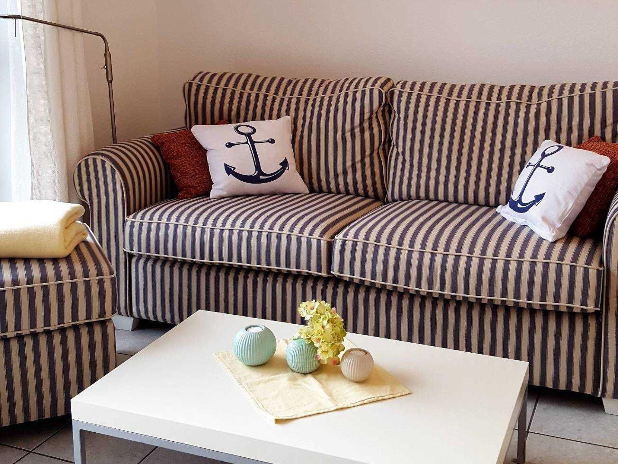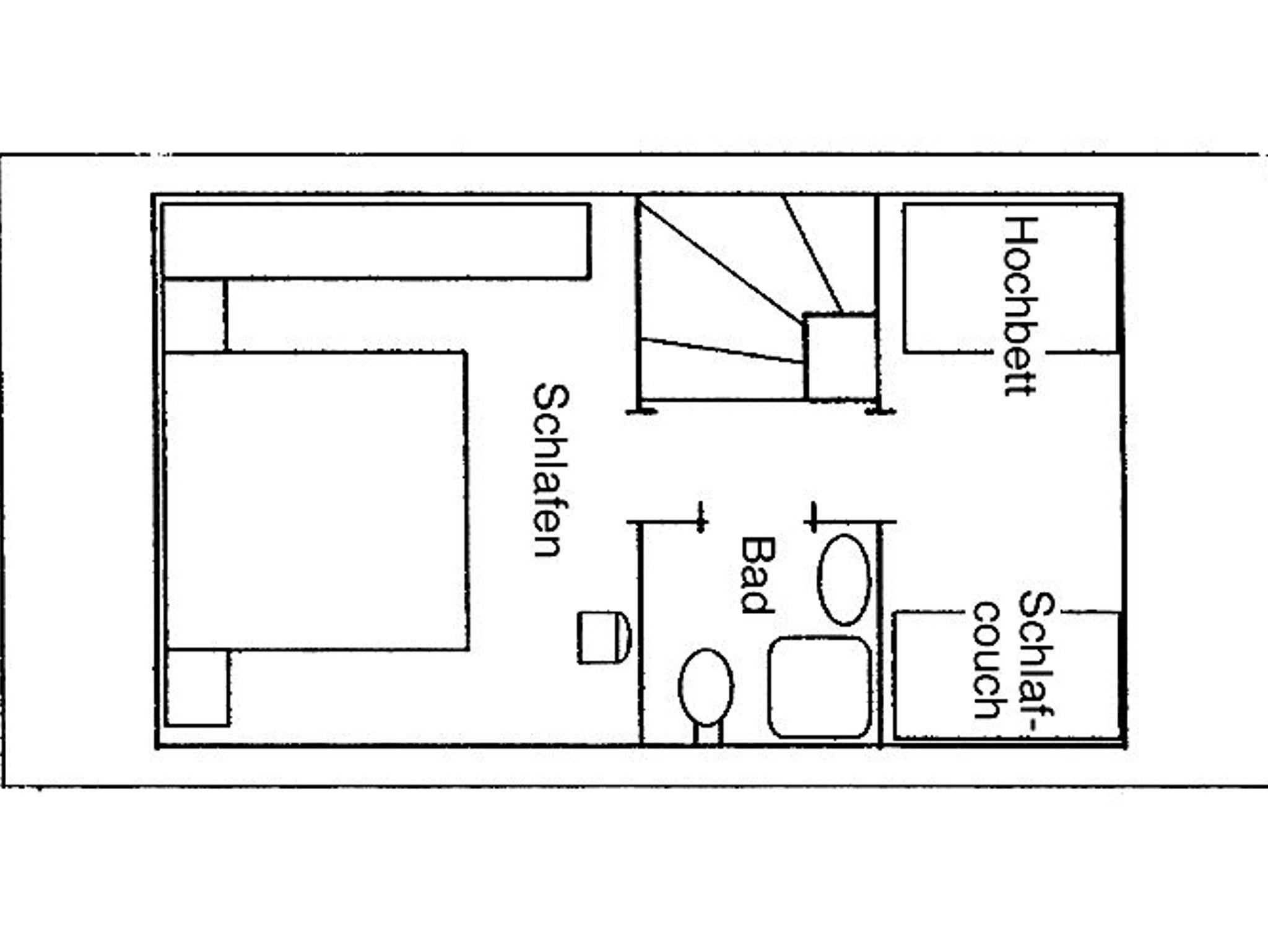 Raumaufteilung: 1 Schlafraum (1 Doppelbett), 1 Schlafraum (1 Doppelbett), 1 Wohnraum, 1 Küchenzeile, 1 Badezimmer mit Dusche.