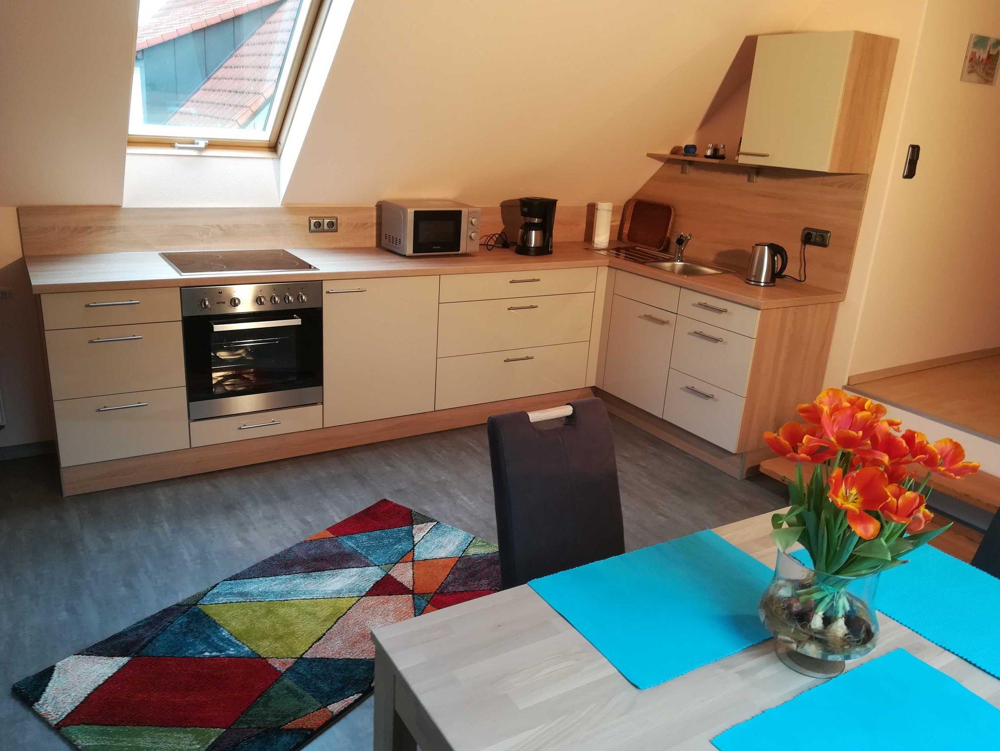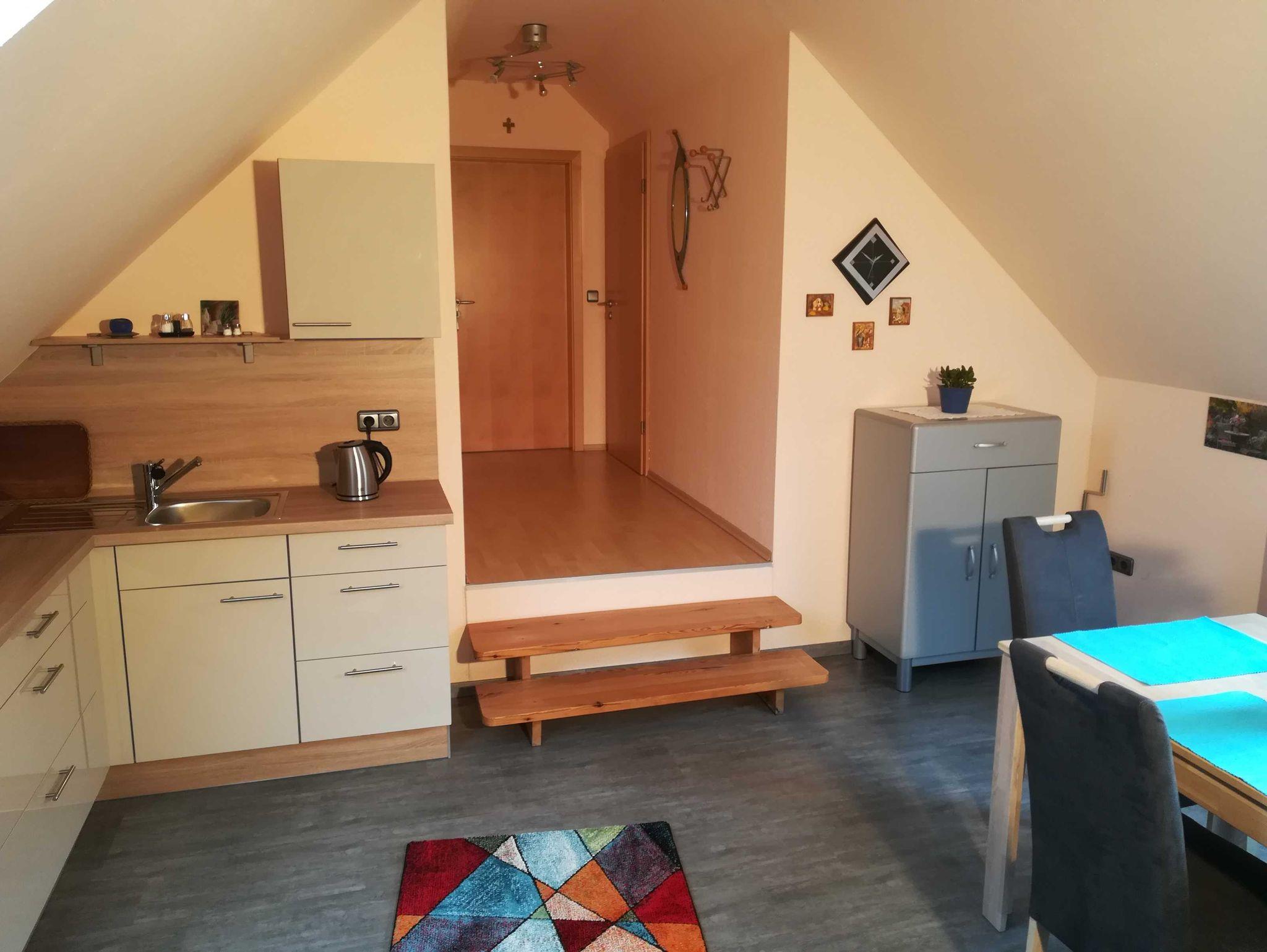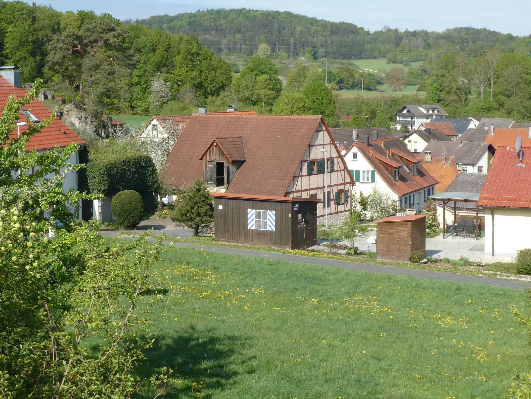 Moderne, schöne Ferienwohnung inmitten der Fränkischen Schweiz. Sie wurde 2019 renoviert, befindet sich im 1.OG unseres Wohnhauses und bietet einen wundervollen Blick über den Ort mit Kirche und Burgruine Thuisbrunn. Die komfortable Wohnung liegt am Ortsrand in ruhiger Lage mit wenig Verkehr, romantische Wanderwege sowie ein bekannter Bier - Wanderweg, der fünf Brauereien verbindet, sind zu Fuß in wenigen Minuten erreichbar. Unser Wohnhaus ist eingebettet in Hof und Gartenanlage, zudem gibt es gemütliche Sitzecken nebst Schaukel und Sandkasten im Garten unseres Grundstücks. Parkmöglichkeit besteht im Hofraum direkt vor dem Haus. Wir freuen uns auf Ihren Besuch. Ihre Familie Schüpferling