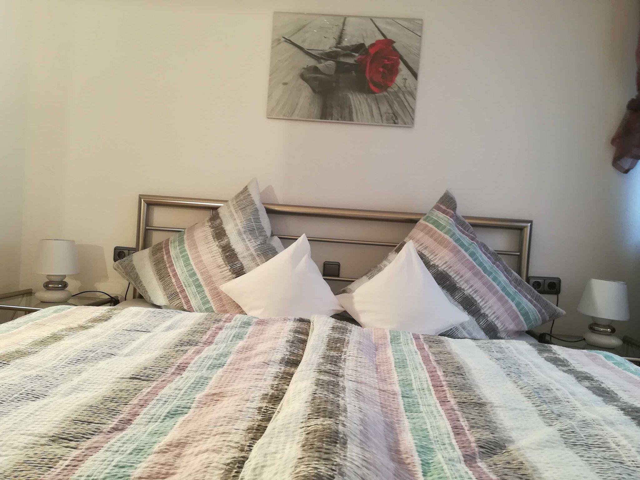 Das Schlafzimmer verfügt über ein Doppelbett (180x200cm), einen geräumigen Schrank sowie eine Kommode. Auf Nachfrage stellen wir gerne ein Kinderbett mit ins Zimmer.