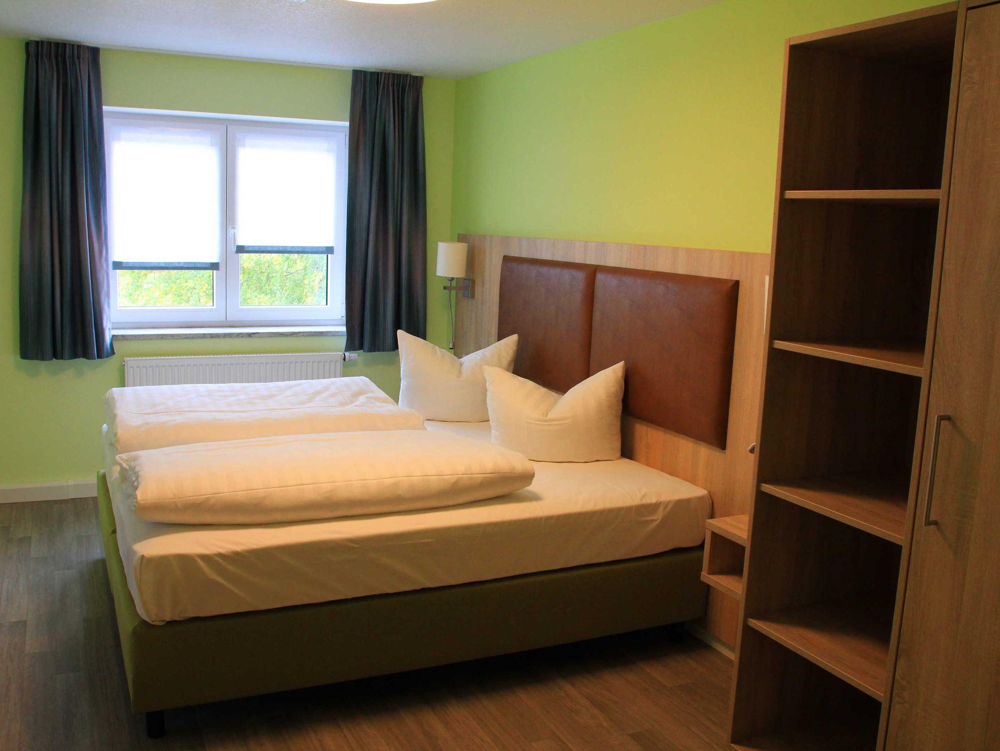 Kleiderschrank, Kofferbock, Spiegel, kl. Schreibtisch. . Bettwäsche, Bade-und Handtücher werden gestellt.