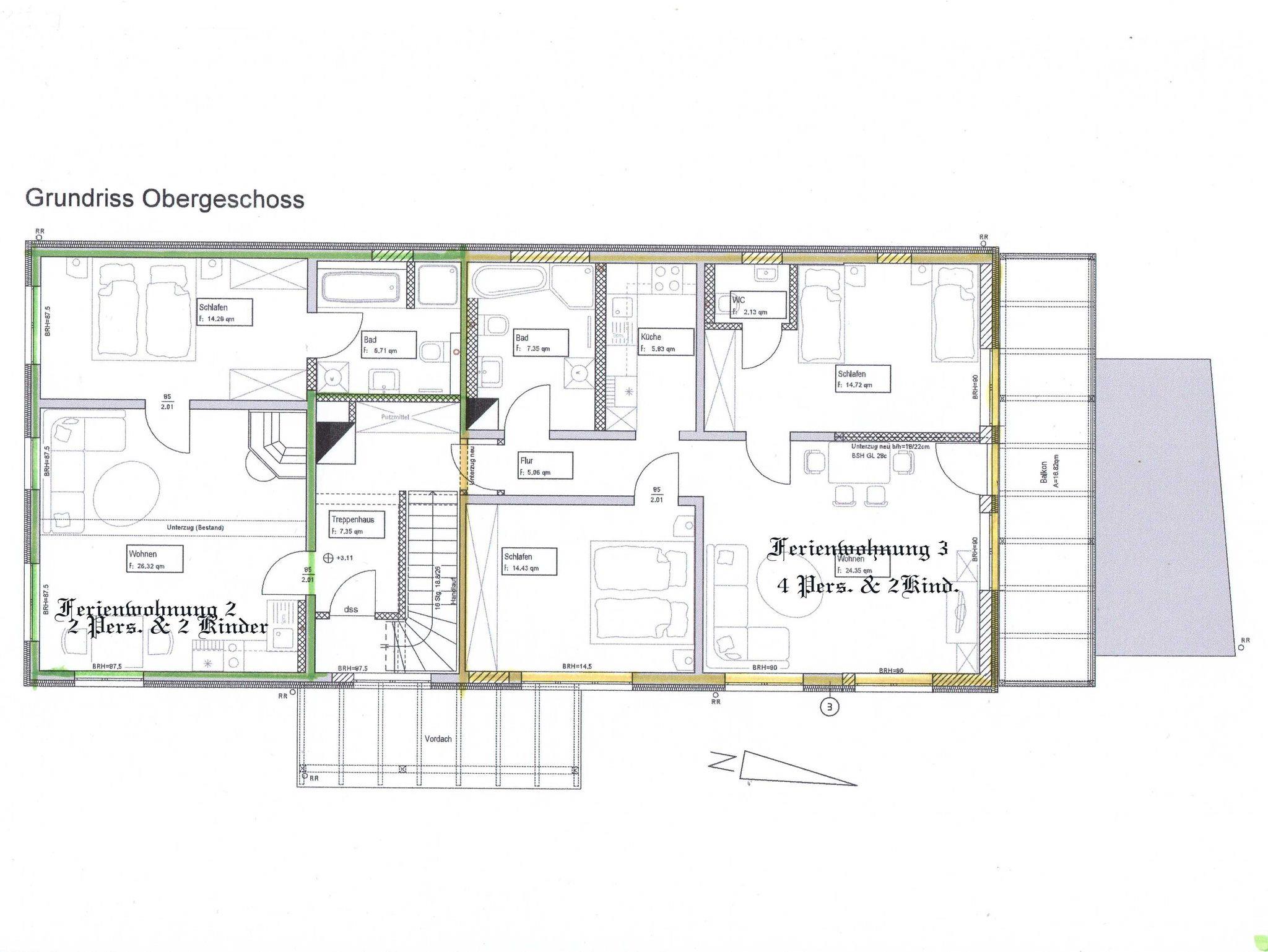 Fereinwohnung 2,3 und 4 je Schlafzimmer eine Naßzelle mit der gleichen Ausstattung nicht behiderten gerecht.