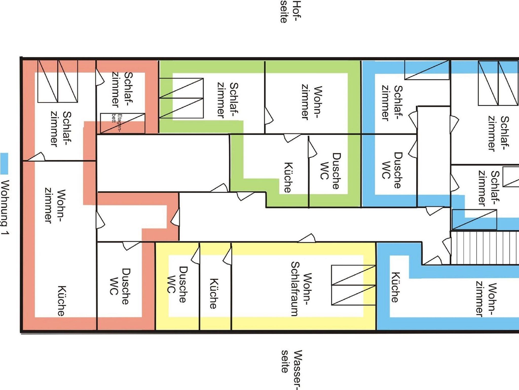 Diese Wohnung eignet sich für 2 - 3 Personen. Es gibt eine Wohnküche, ein Schlafzimmer mit Doppelbett, ein Einzelzimmer mit Schlafsofa 140x188cm, das durch das Schlafzimmer begehbar ist, sowie ein Badezimmer mit Dusche.