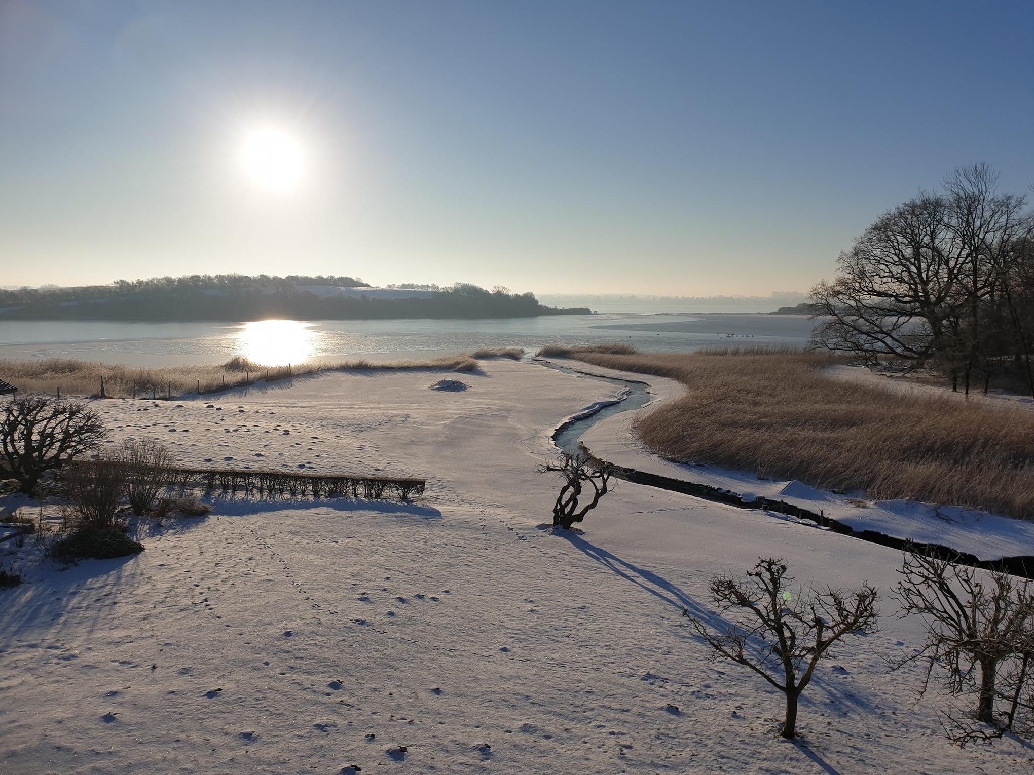 Von Wohnzimmer und Küche aus haben Sie Blick auf die Schlei und den Garten.