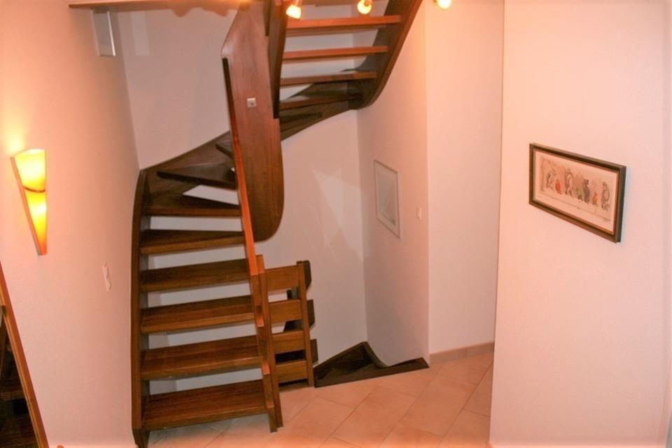 Im Haus und im Garten befinden sich mehrere Stufen.