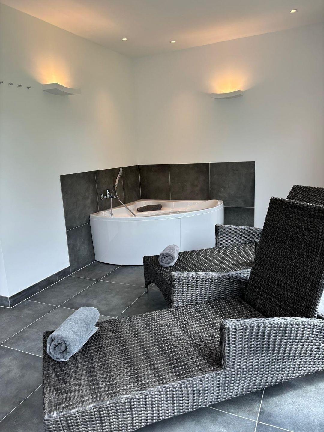 Das Feriendomizil verfügt im Haupthaus über 1 Wohn- Essbereich, 1 offene Küche, 3 Schlafräume und 1 Duschbad. In dem Gartenhaus befinden sich 1 Schlafraum und 1 Gäste-WC. In dem ca. 500 m² großen, komplett eingezäunten Garten gibt es zusätzlich eine Wellnessoase mit Sauna, Whirlwanne, Dusche und WC.
