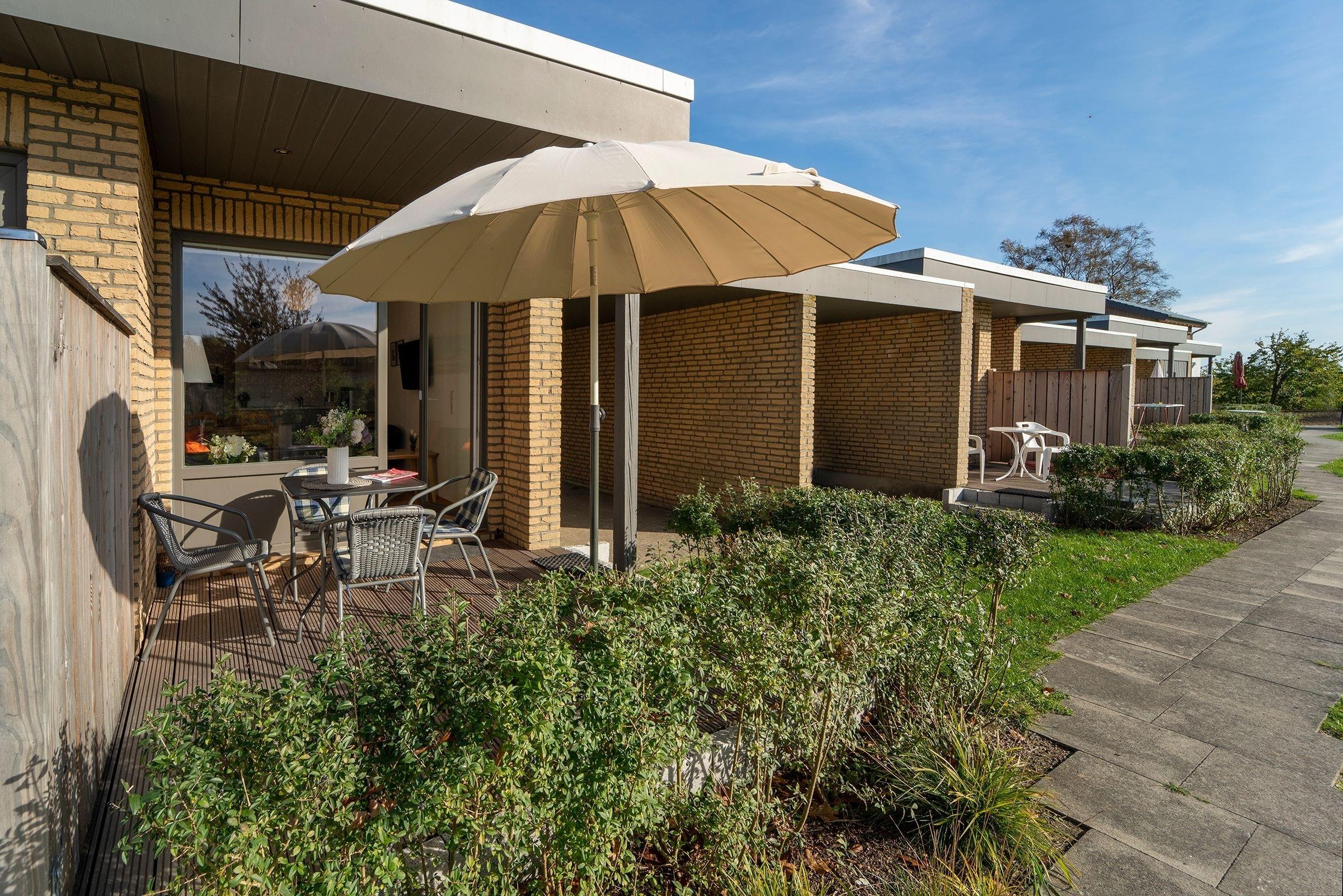 2-Zimmer-Bungalow auf ca. 44 m² mit teilüberdachter Süd-Terrasse für bis zu 4 Personen.