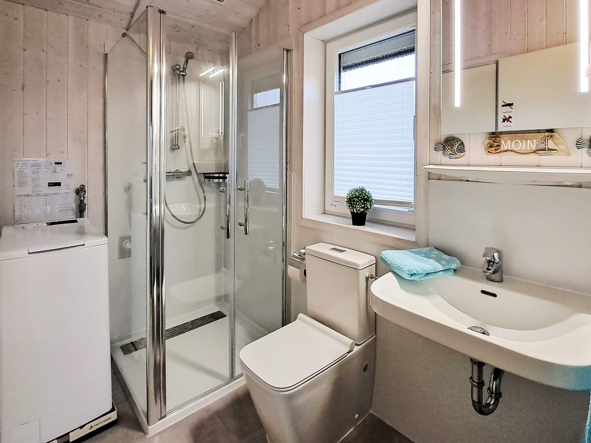Dieses gemütlich und hell eingerichtete 2011 erbaute Ferienhaus (52 m²), wurde im skandinavischen Stil eingerichtet und liegt in dem beliebtem Ferienhausgebiet Ostseestrandpark Grömitz am Lensterstrand. In diesem Ferienhaus erwartet Sie eine offene und gut ausgestattete Küche mit Geschirrspüler und Mikrowelle. Die sonnige nach Süden ausgerichtete Holzterrasse, lädt zu schönen Grillabenden mit der Familie und entspannenden Sonnenstunden nach einem langen Strandtag oder Spaziergang auf dem Deich ein. An kälteren Tagen sorgt der Bioethanol Kamin für behagliche Wärme im Wohnzimmer. Dieses Ferienhaus bietet Ihnen zwei separate Schlafzimmer (beide mit Doppelbett 2x80/200) mit eigenem Zugang zum Badezimmer. Babybett vorhanden, aufgrund der Hausgröße aber nur mit Einschränkungen im Schlafzimmer nutzbar. In beiden Schlafzimmern sowie im Badezimmer sind Außenrollläden mit Insektenschutzgitter montiert. 2 weitere Außenrollläden befinden sich im Wohn/Küchen Bereich. Das Badezimmer ist mit Fußbodenheizung ausgestattet. Duschkabine, Waschmaschine, Wäscheständer und Fön gehören zur Ausstattung. Sitzauflagen für Terrassenstühle, zwei Liegen sowie ein Sonnenschirm für die Terrasse sind vorhanden. Für die kleinsten Gäste gibt es: Kinderhochstuhl, Fußhocker und Toilettenaufsatz. Bücher zum Schmökern und diverse Spiele sind vorhanden.