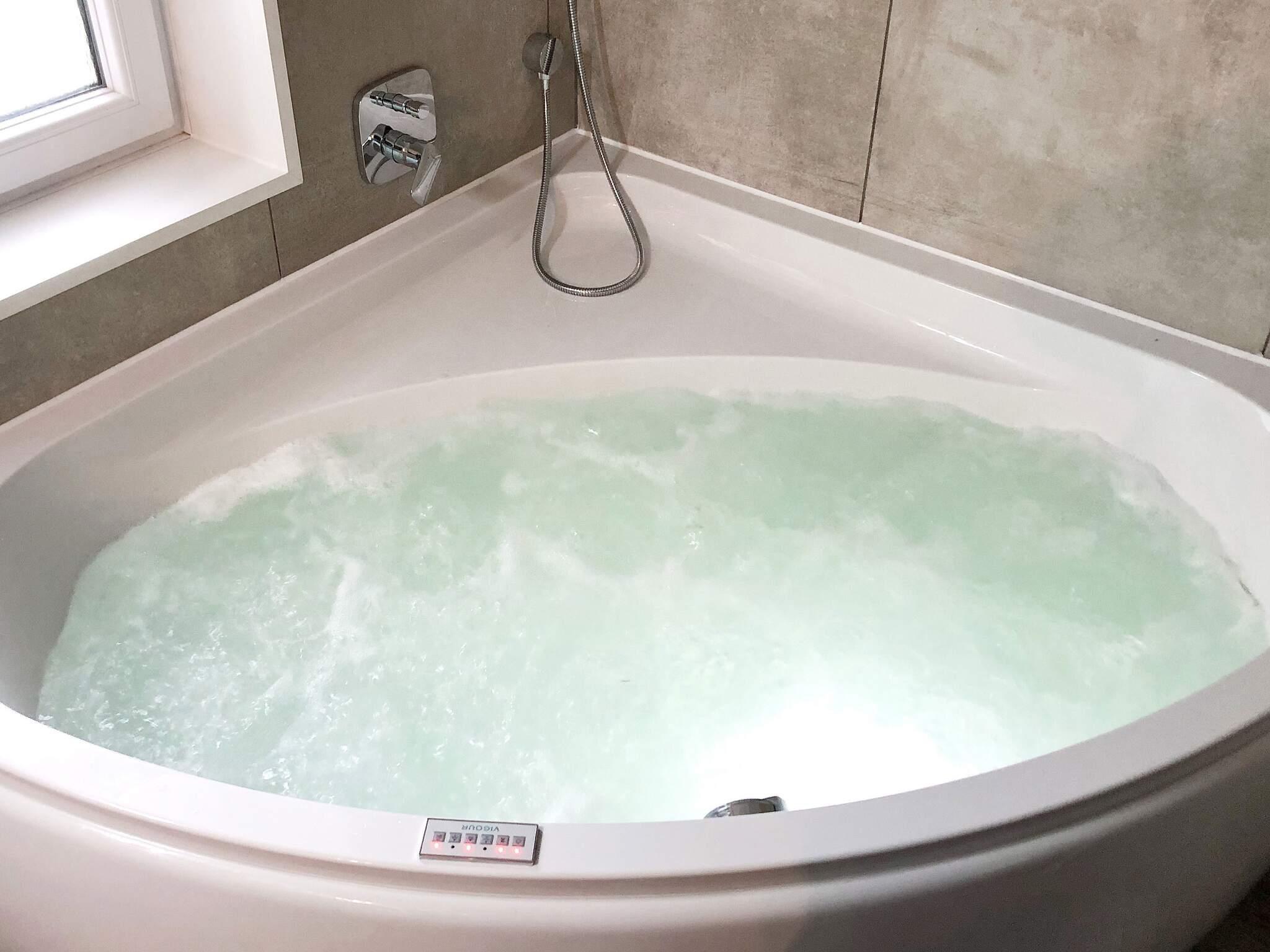 Nach einem langen Spaziergang in der schönen Natur können Sie sich im hauseigenen Whirlpool entspannen oder in der Sauna aufwärmen lassen. Außerdem gibt es auch eine mit Trockner kombinierte Waschmaschine. Das Haus liegt auf einem Naturgrundstück und vom Wohnzimmer aus gelangen Sie auf die große, teils überdachte Terrasse, die zu entspannenden Stunden einlädt, beispielsweise zum Sonnenbaden oder zu einem gemütlichen Grillabend im Kreise der Familie.