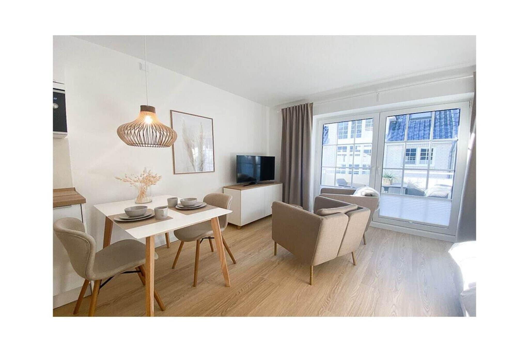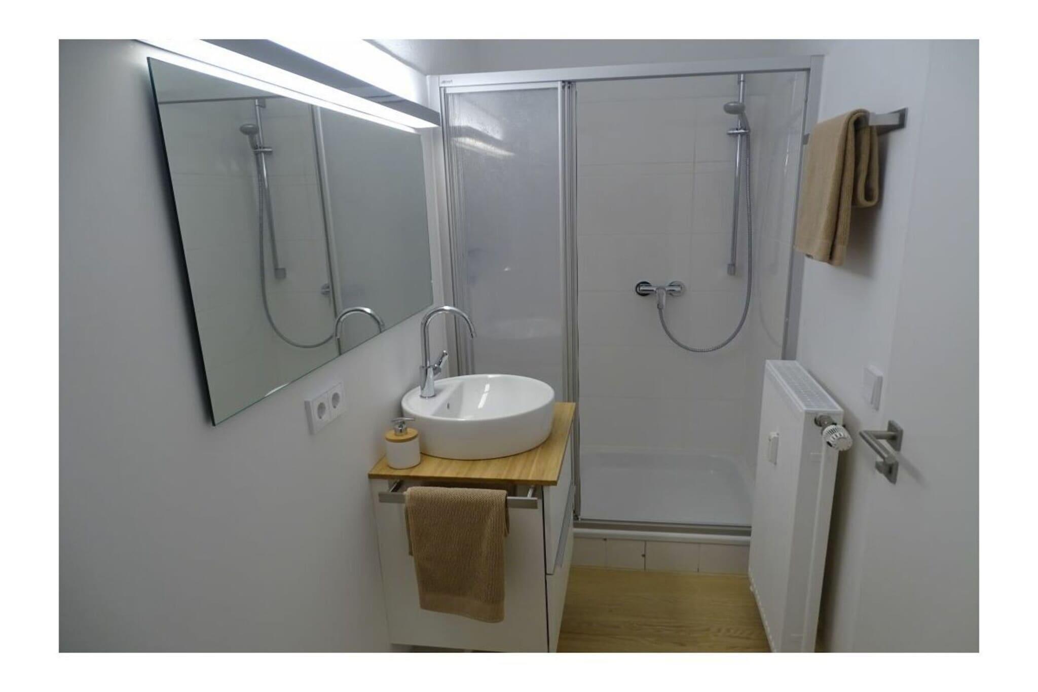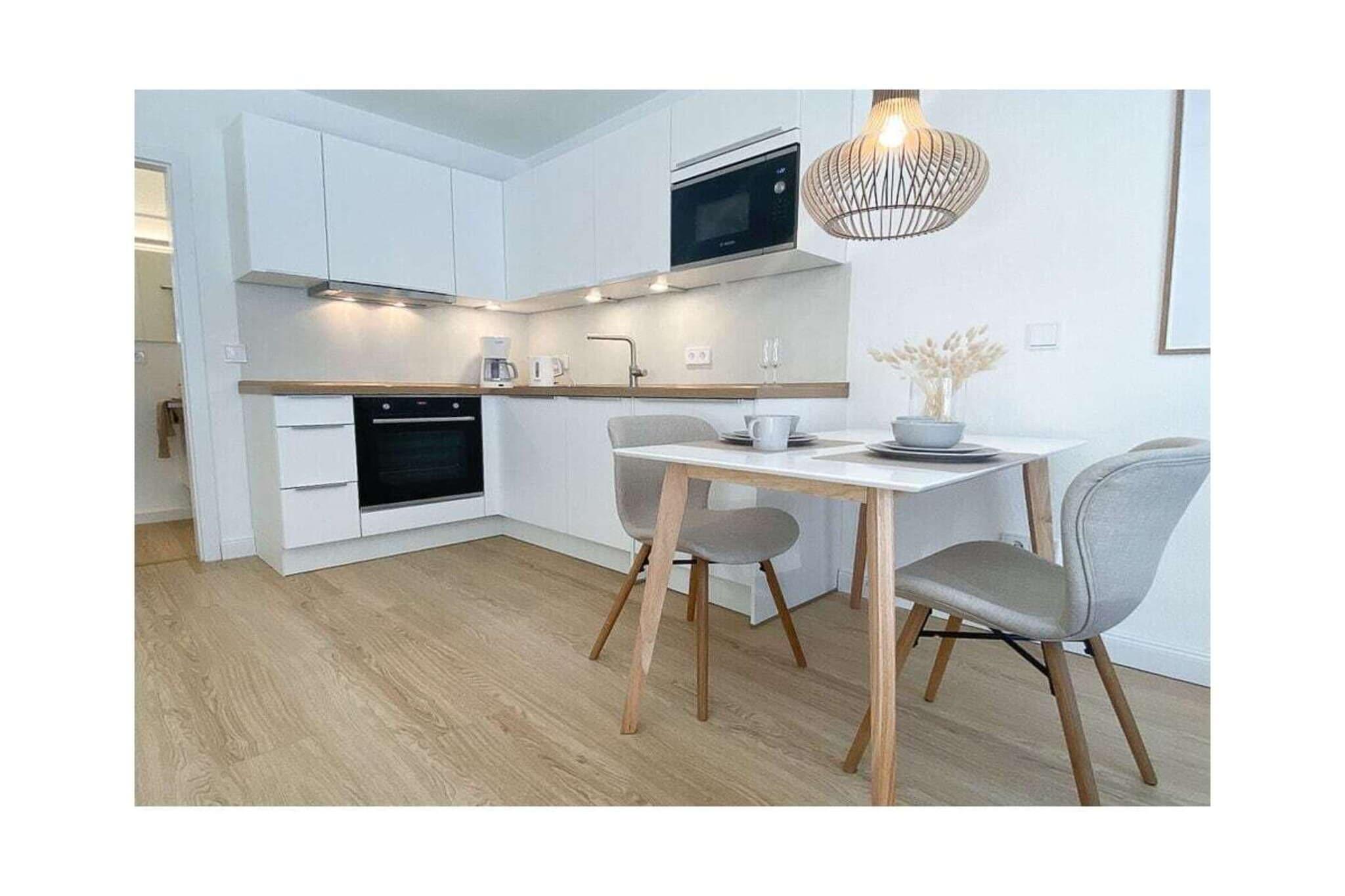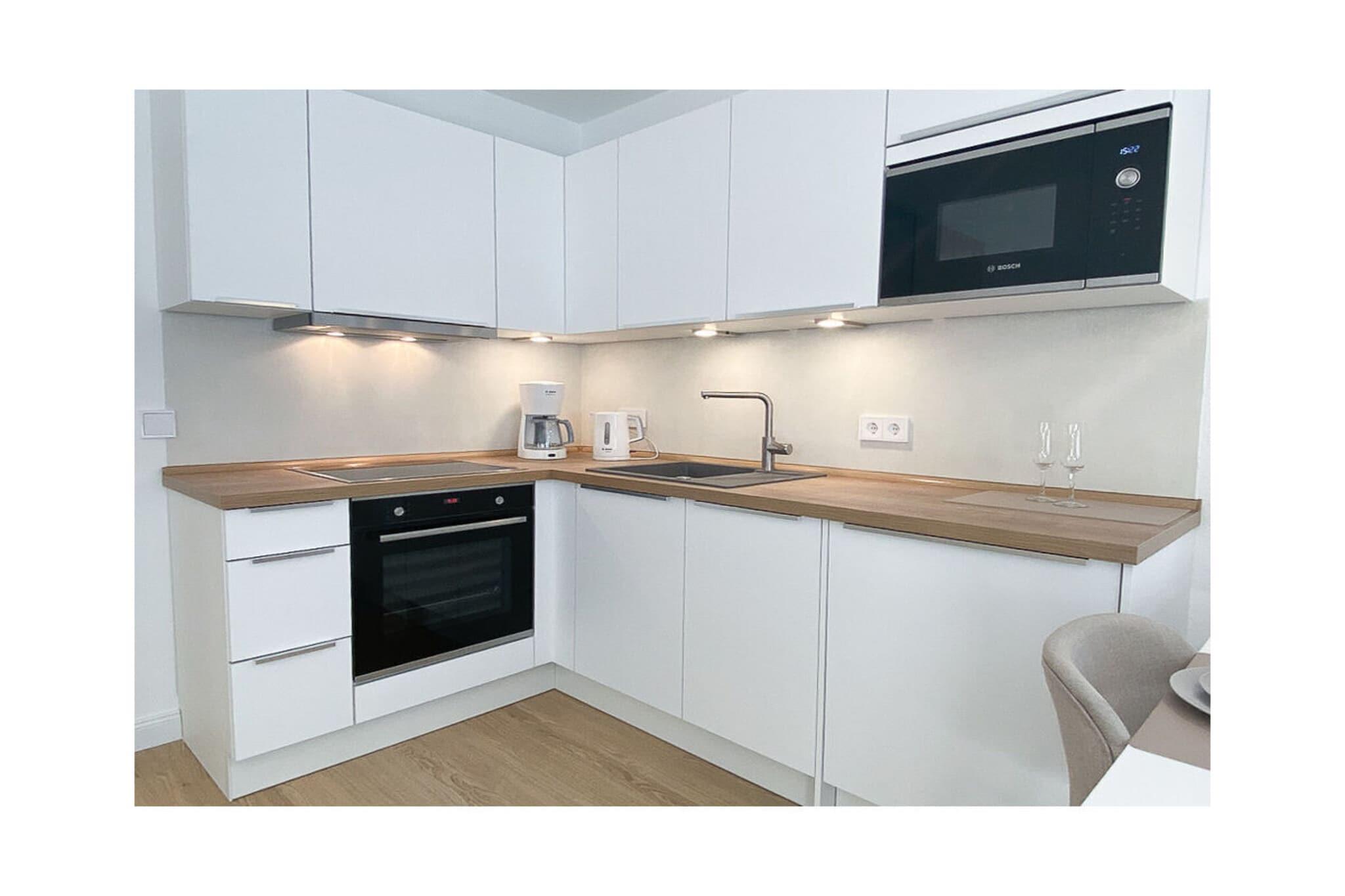 Eine wunderschöne moderne Ferienwohnung in der 1. Etage eines sehr gepflegten Apartmenthauses, nur ca. 250m vom weißen Ostseestrand und der beliebten Promenade entfernt. Die Wohnung wurde 2021 umfassend renoviert, liebevoll eingerichtet und befindet sich in ruhiger Lage am Blankwasserweg der parallel zum Deich mit dem dahinterliegenden Strand verläuft. Die Wohnfläche der ca. 34qm großen Ferienwohnung verteilt sich auf einen Wohn/Schlafbereich mit integrierter offener und hochwertigen Einbauküche, über ein modernes Duschbad mit WC sowie ein möblierten Balkon mit Südwestlage. Der große Wohnraum ist mit einem Doppelbett ( getr. Matratzen, offenes Fußende, Maße 2 x 0,90 x 2 Meter ), 2 Sessel, einem TV Schrank mit Flachbildfernseher, einem großen Kleiderschrank sowie einer offener Küchenzeile mit Essplatz versehen. Die Küche ist u.a mit 4 Ceranfeldern mit Dunstabzugshaube, Mikrowelle, Spülmaschine, Kühlschrank mit Tiefkühlfach, Kaffeemaschine, Toaster und Wasserkocher ausgestattet. Von hier aus haben Sie Zugang zu dem möblierten Südwest-Balkon, der überdacht ist und wo es sich auch bei schlechtem Wetter leben lässt. Das Badezimmer verfügt über ein WC, Dusche und einen Waschtischschrank mit viel Stauraum.