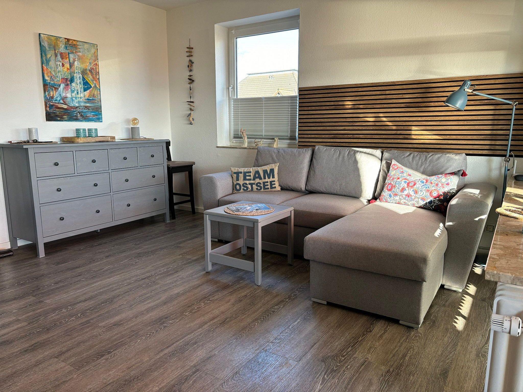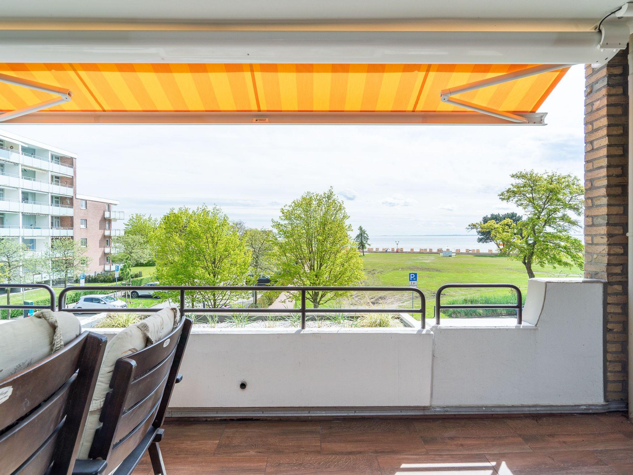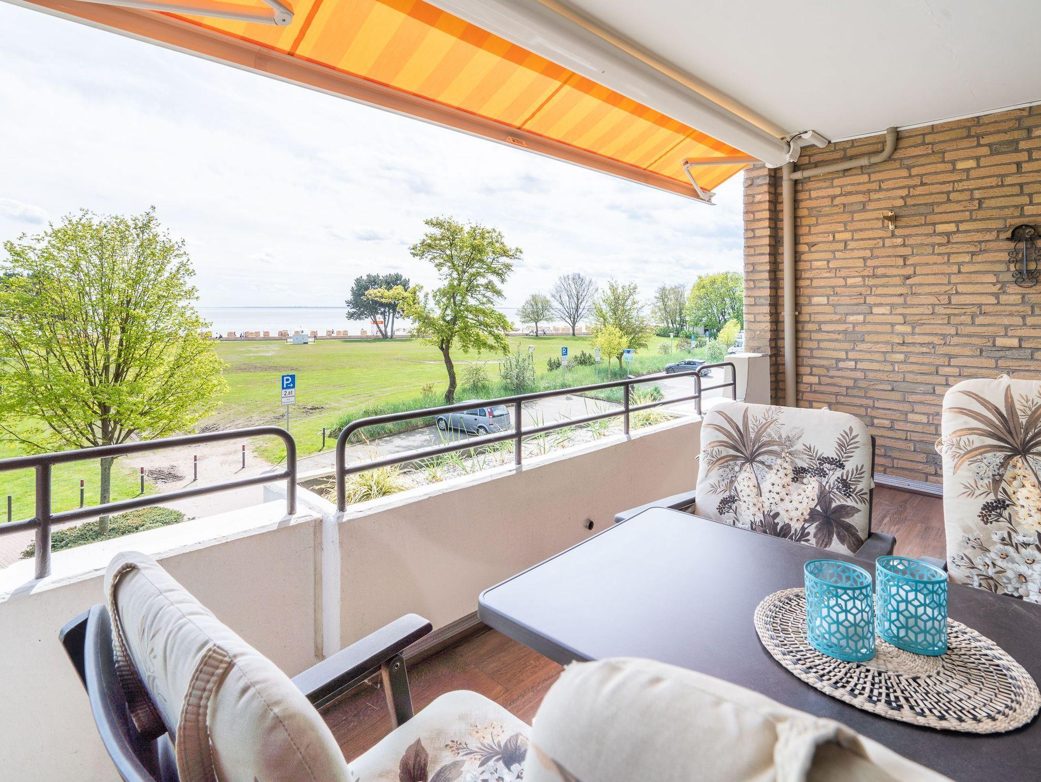 Moderne Ferienwohnung in Grömitz mit Balkon und direktem Meerblick, nur wenige Schritte vom Strand entfernt.