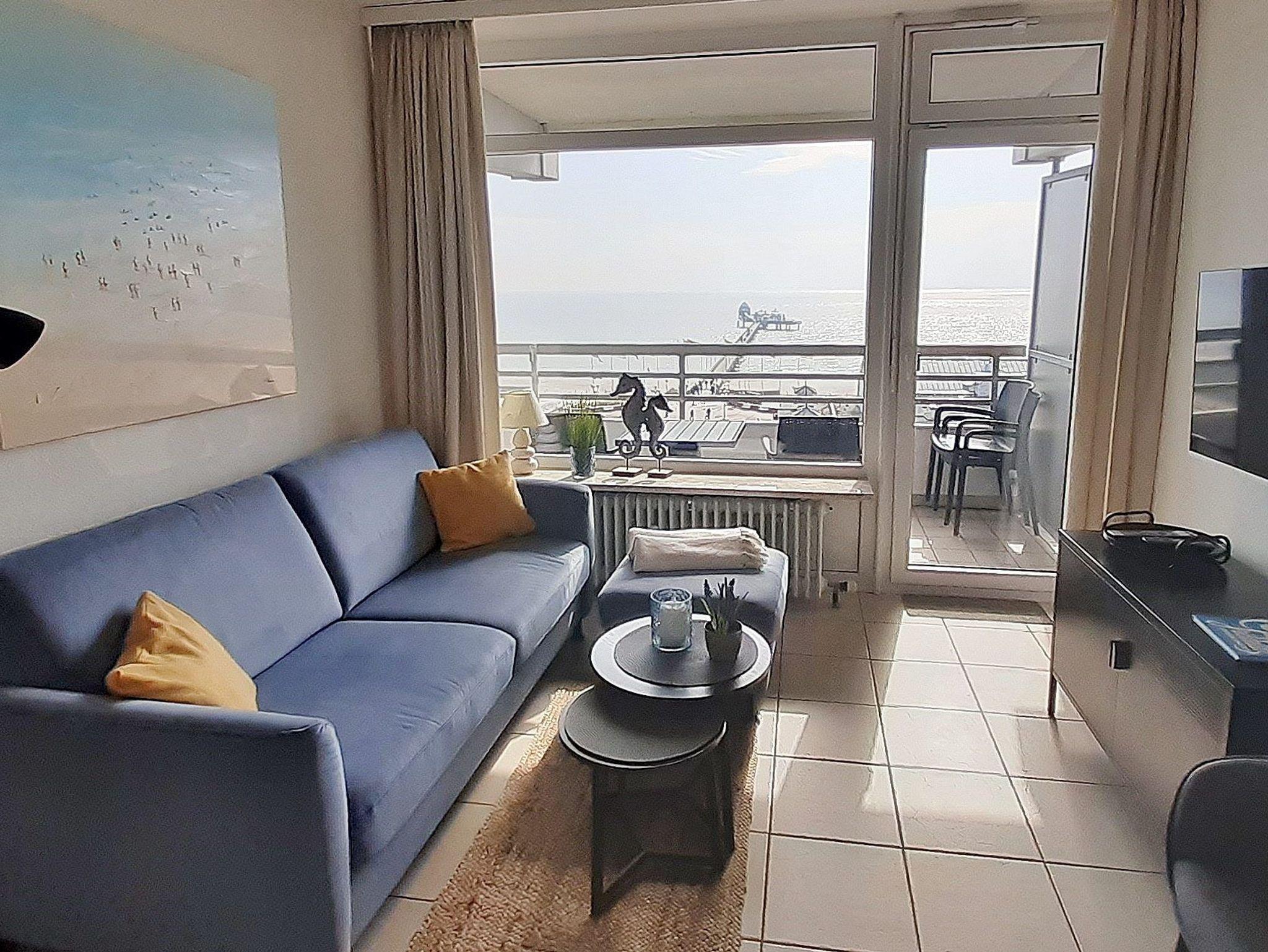 Moderne Ferienwohnung im 7. OG mit Balkon und Meerblick direkt an der Strandpromenade in Grömitz.