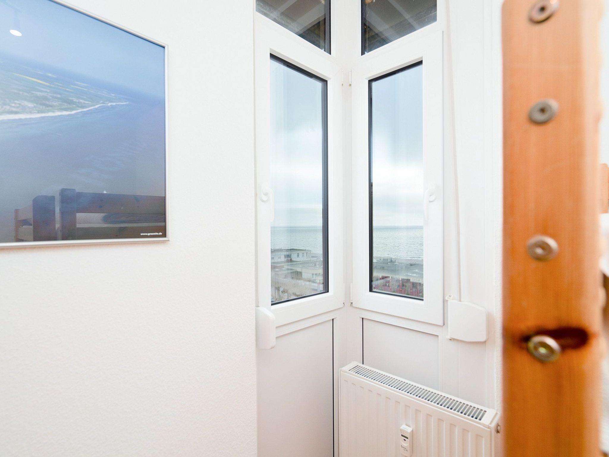 Die Wohnung befindet sich im 7. OG im Grömitz-Center 2 (Fahrstuhl vorhanden, es führen 4 Stufen zur Wohnung)