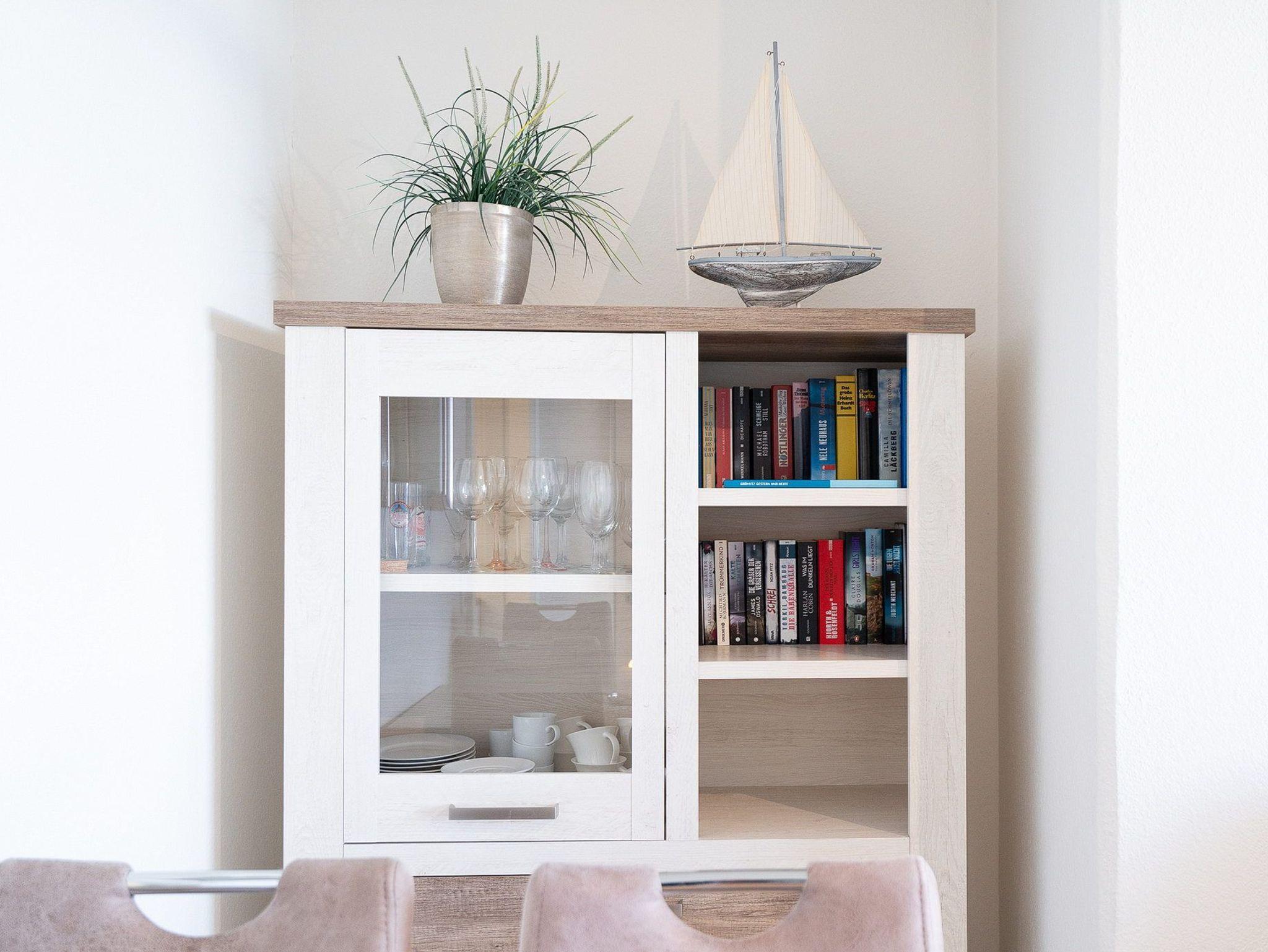 Die moderne, komplett eingerichtete Küchenzeile verfügt über einen 4 Platten-Cerankochherd, einen Kühlschrank, einer Mikrowelle, einen Geschirrspüler sowie einem Toaster, Wasserkocher und Kaffeemaschine.