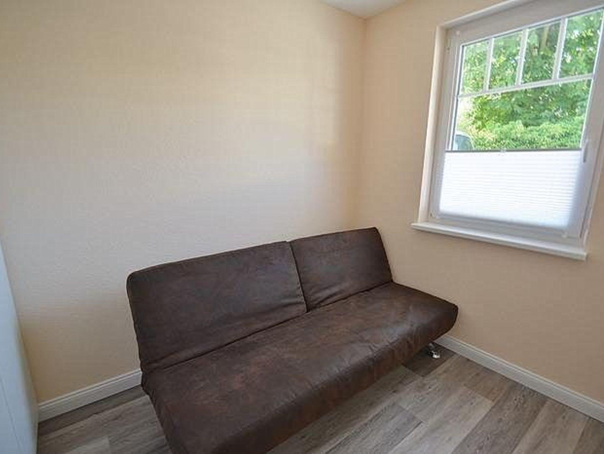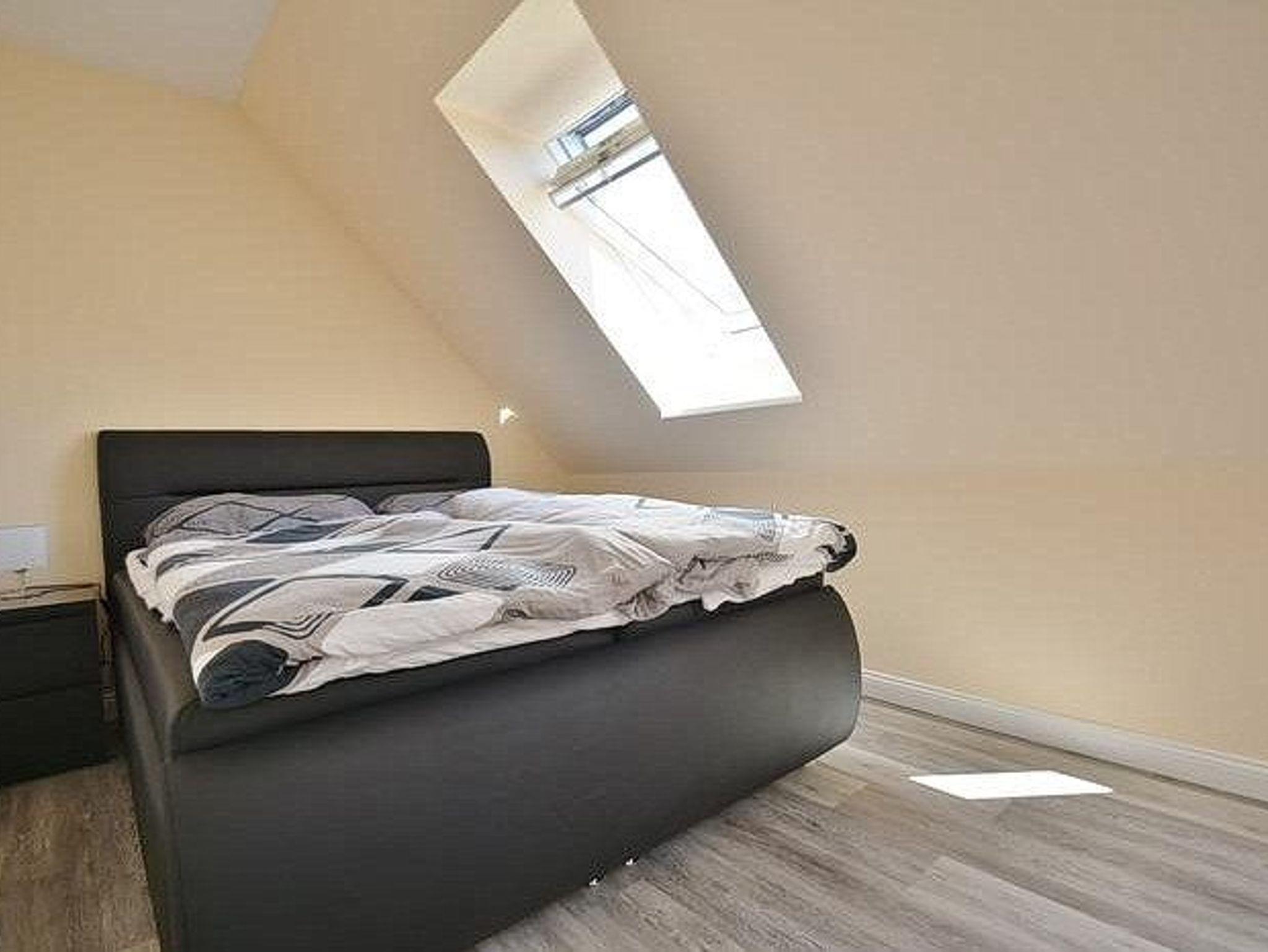 Das Schlafzimmer in der 1. Etage ist mit einem Boxspringbett (180x200 cm) und einem großzügigen Kleiderschrank ausgestattet. Des Weiteren steht ein Flachbildfernseher zur Verfügung. Das Zimmer ist mit Designer-Planken ausgelegt. Das Fenster lässt sich mit einem Außenrollladen verdunkeln.