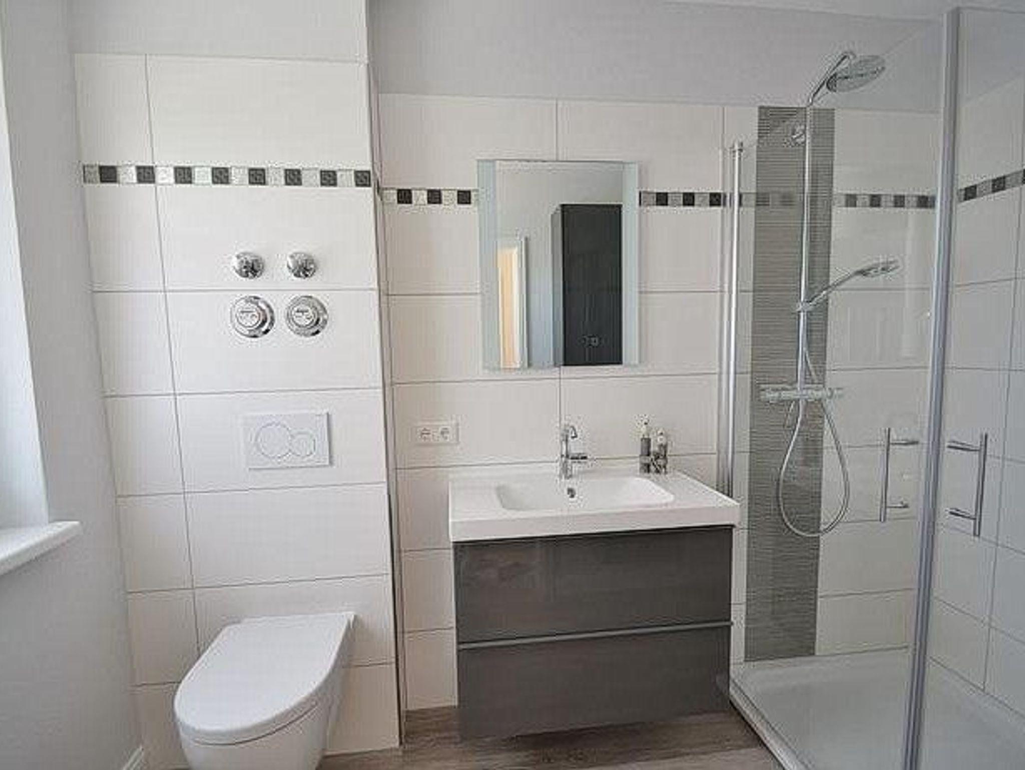Das Haus verfügt über 2 Tageslichtbäder. Das Bad im EG ist mit einem Waschbecken, einem WC und einer Dusche ausgestattet. Das Bad in der 1. Etage verfügt über ein Waschbecken, ein WC und eine Dusche.