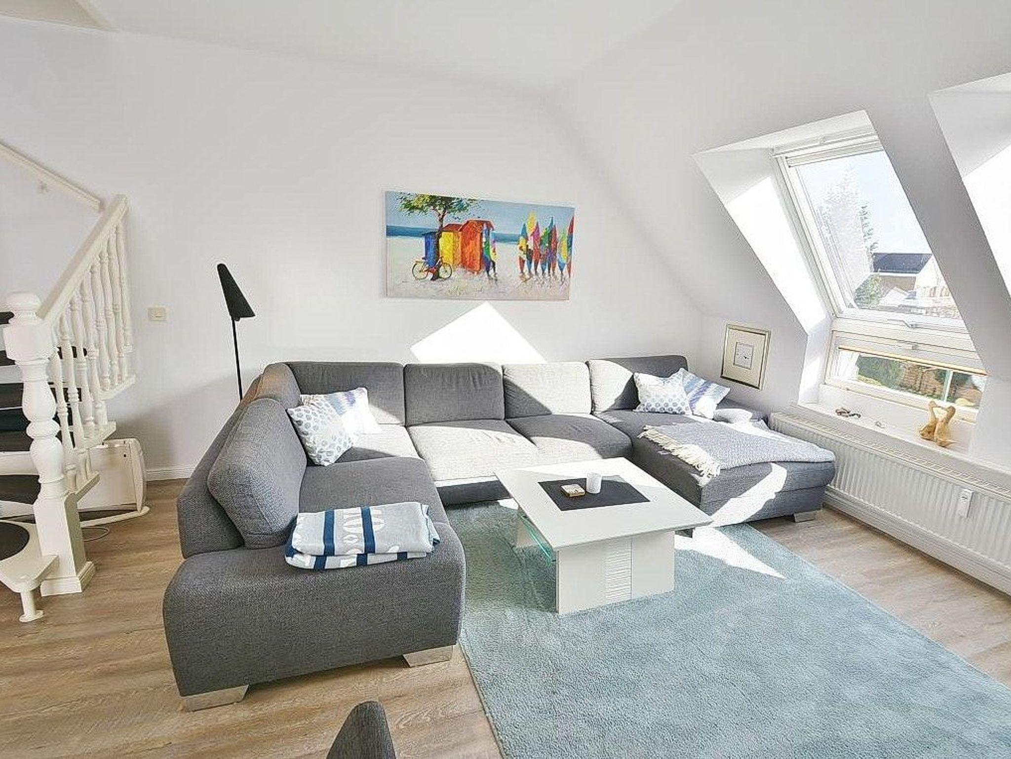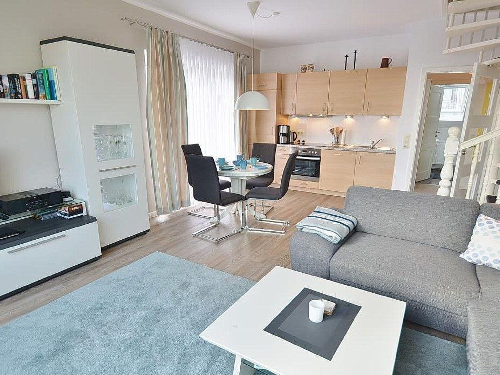 Helle Maisonette-Wohnung nahe Yachthafen, Strand und Steilküste, mit Balkon und moderner Ausstattung.