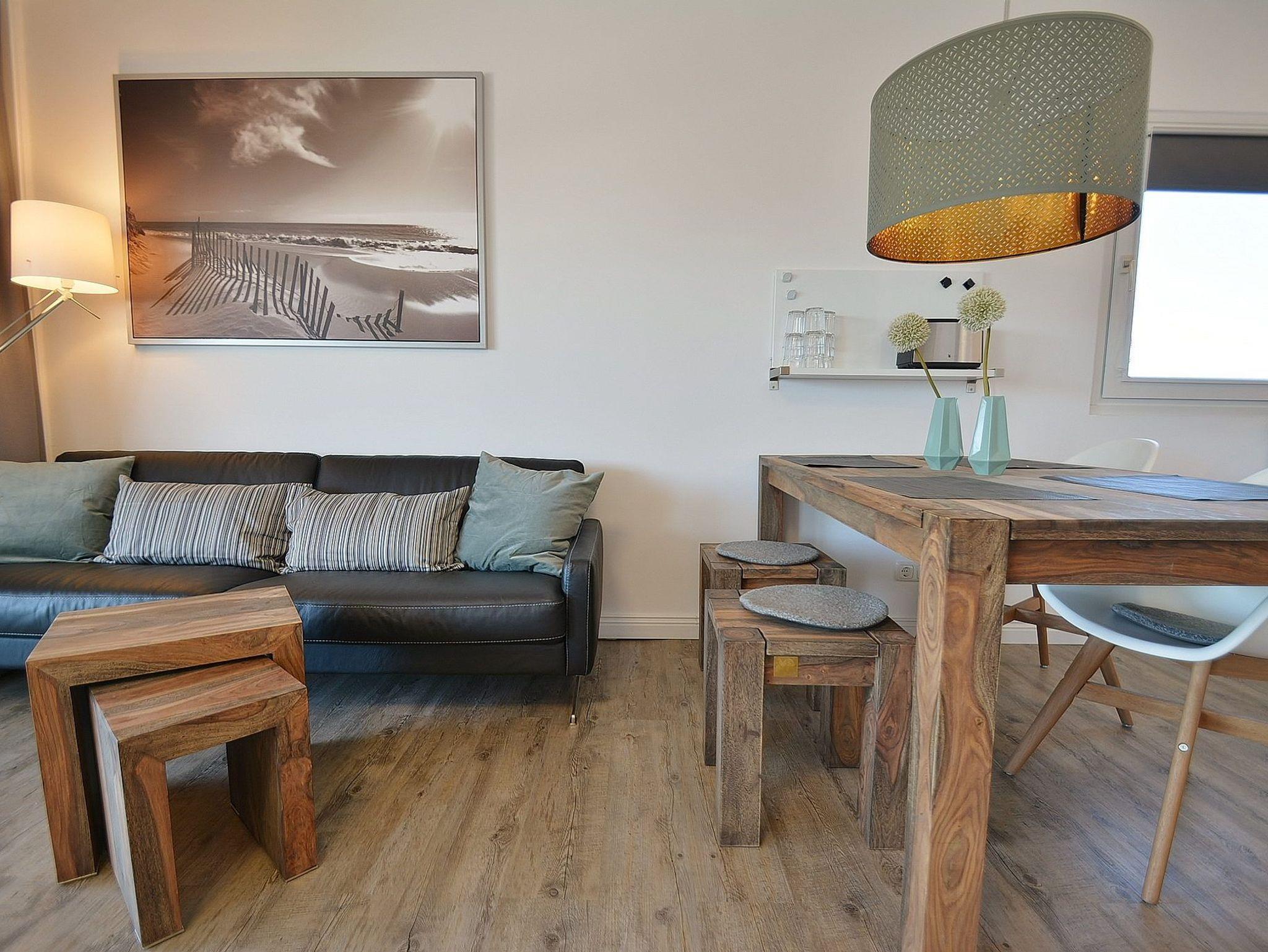 Moderne Ferienwohnung in Grömitz direkt am Strand mit Balkon und umfassender Ausstattung für einen ruhigen Urlaub.