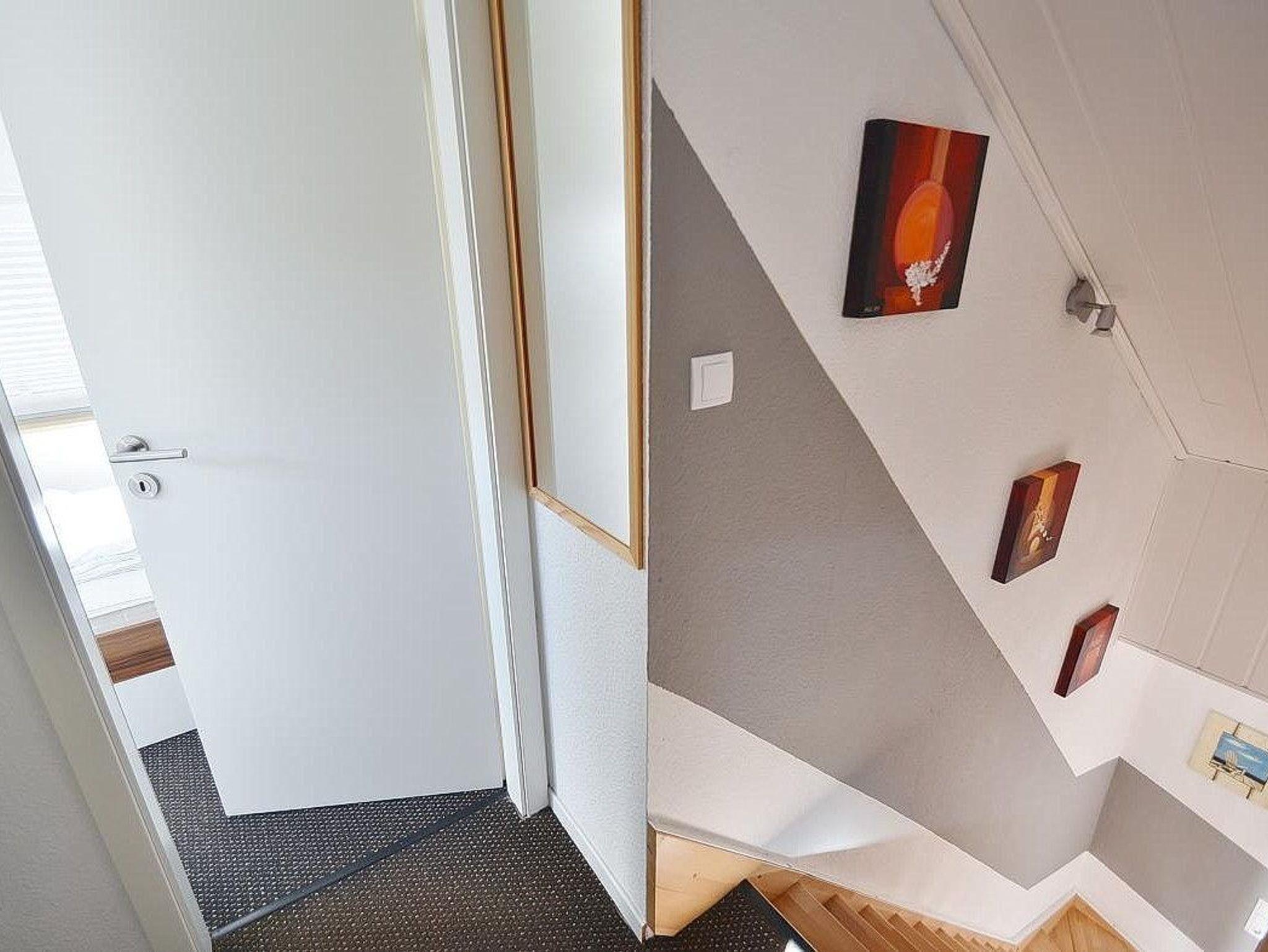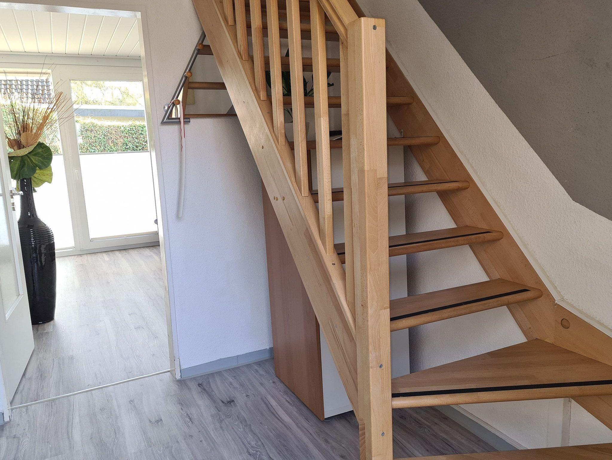 Über eine Raumspartreppe gelangen Sie ins Obergeschoss zu den Schlafräumen.