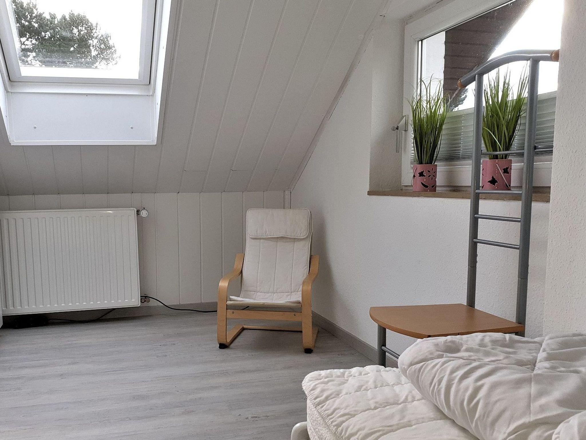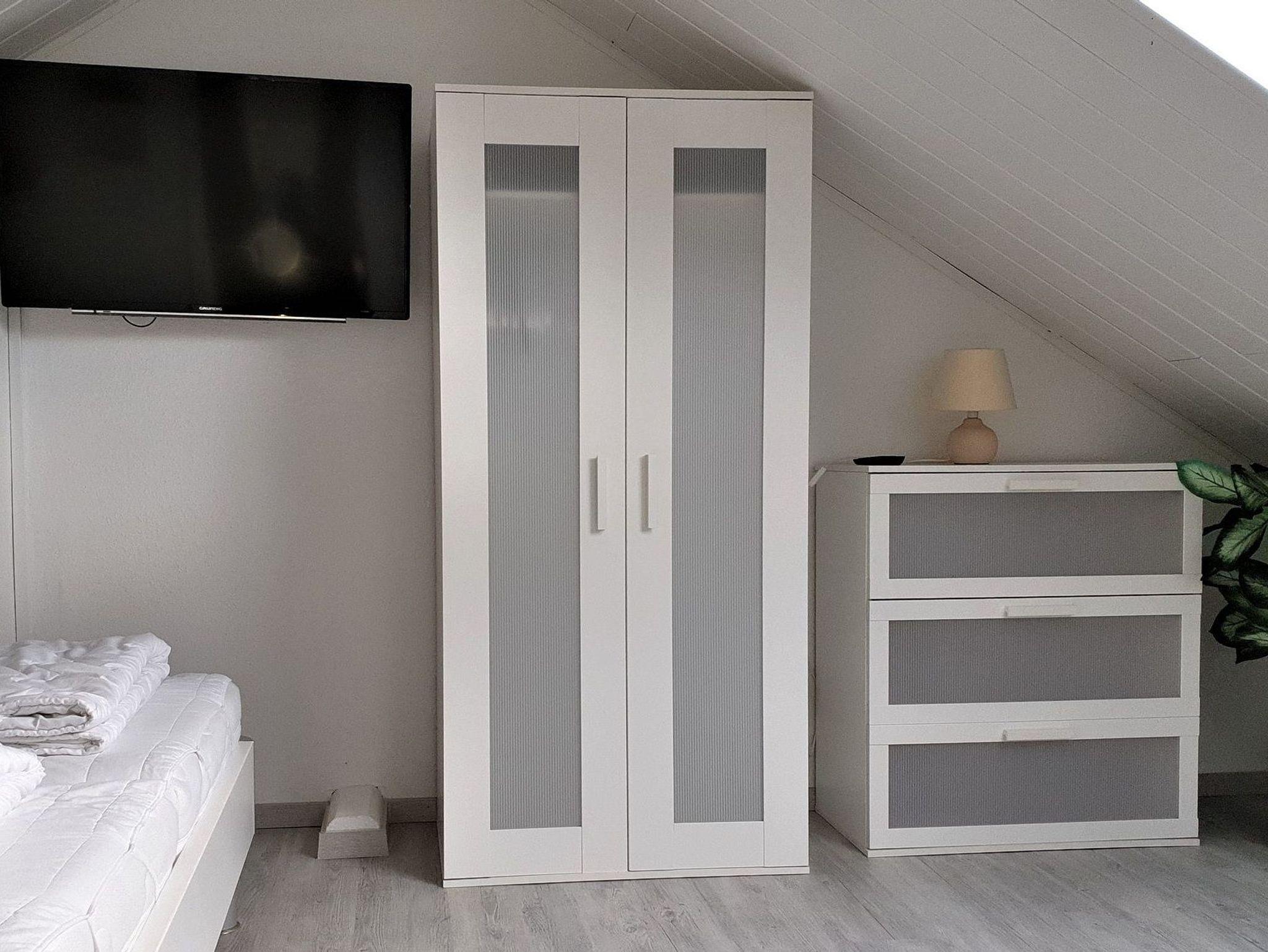 Im Erdgeschoss befindet sich ein Gästezimmer mit Einzelbett (90x200) und Kleiderschrank.
