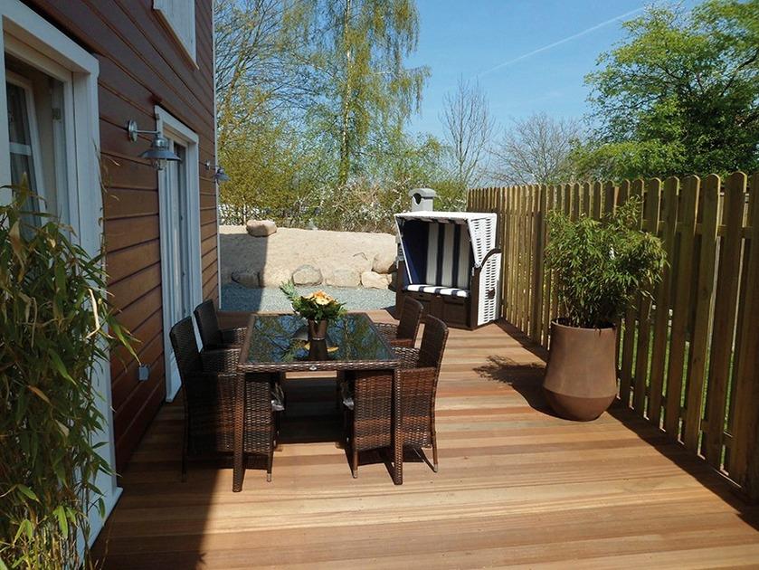 hochwertigen Gartenmöbeln und Strandkorb auf der Terrasse, Parkplatz direkt