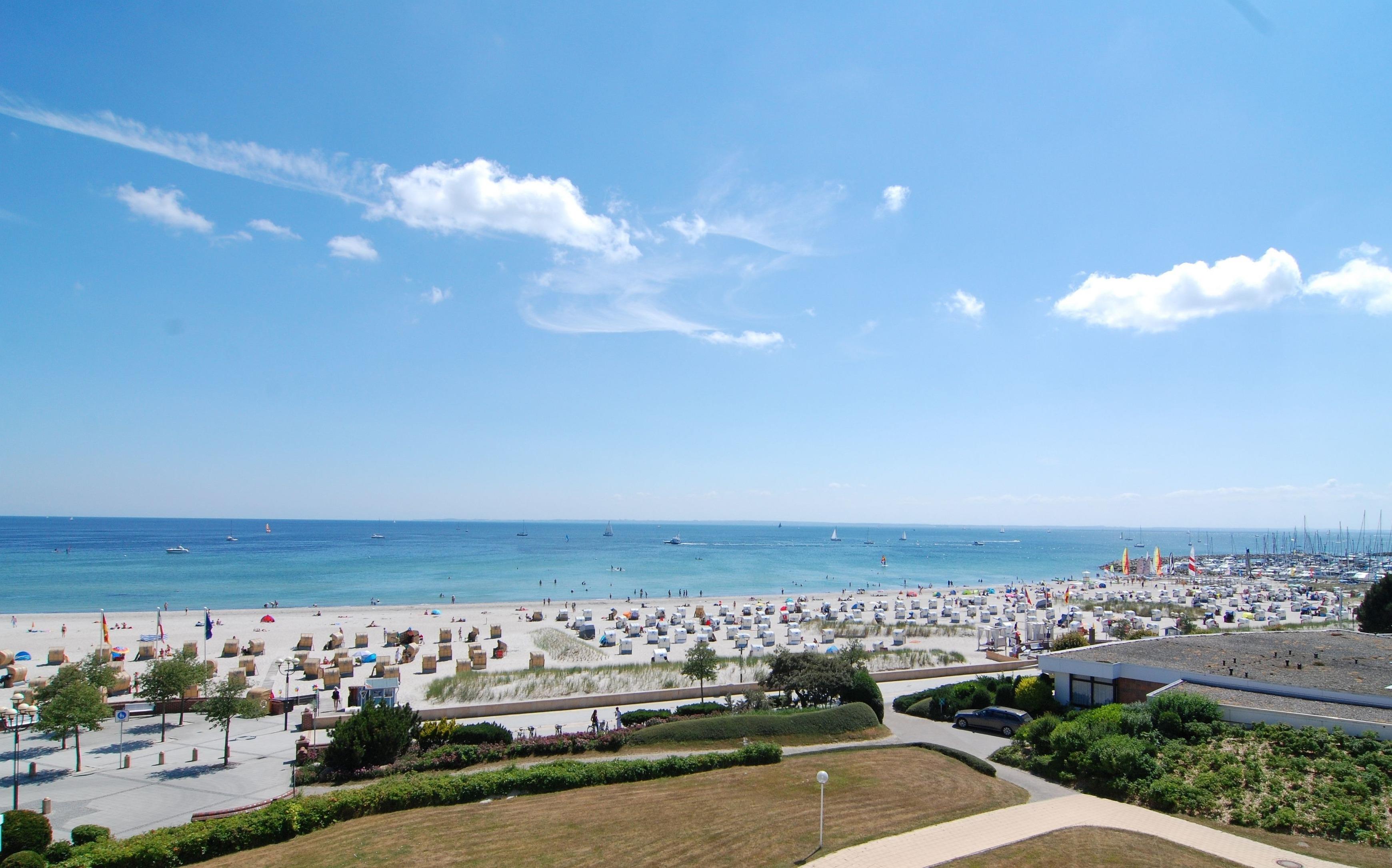 Moderne 3-Zimmer-Ferienwohnung mit Seeblick, Balkon und Schwimmbad nahe Ostseestrand in Grömitz.