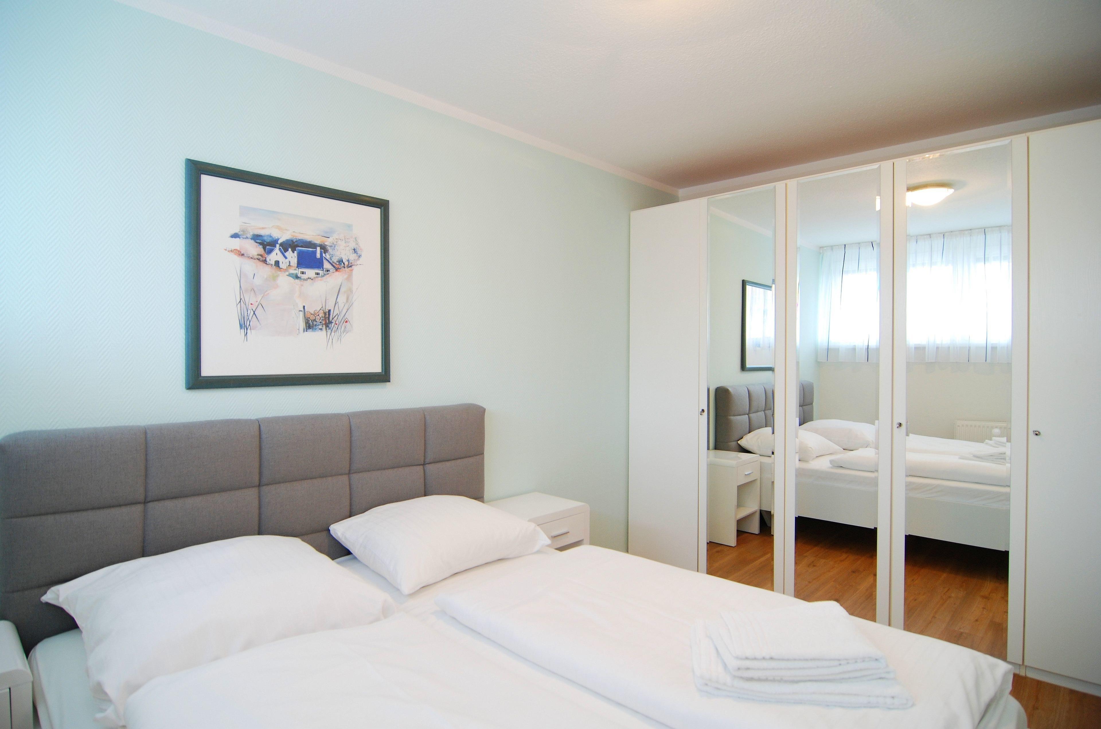 Moderne 3-Zimmer-Nichtraucherwohnung für bis zu 4 Personen in der obersten Etage mit Südbalkon und besonders schönem Seeblick. Beide Schlafzimmer sind mit gemütlichem Doppelbett ausgestattet. Sonderausstattung: Geschirrspüler, Mikrowelle und Markise. Haustiere sind nicht erlaubt.