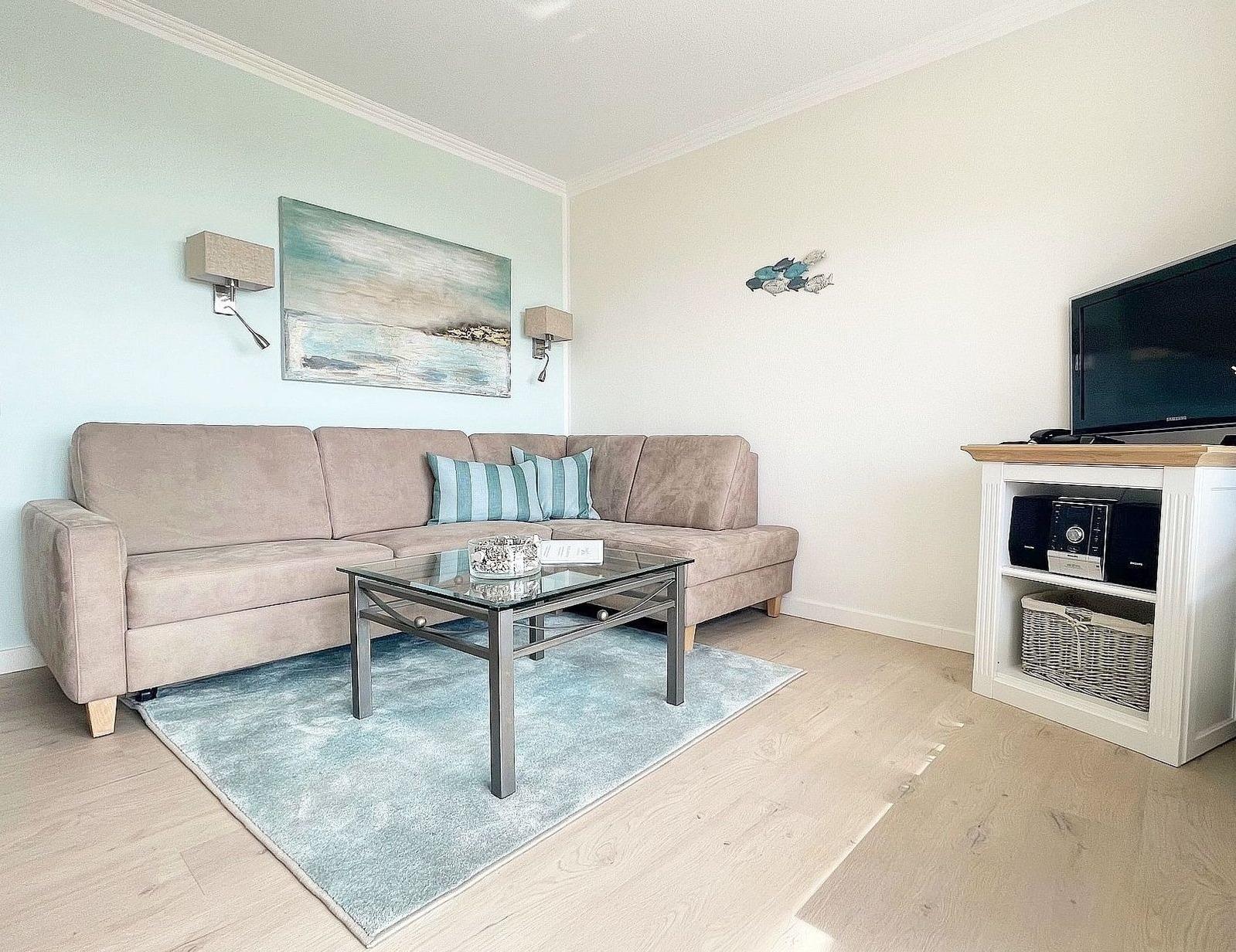 Gemütliche 2-Zimmer-Ferienwohnung in Grömitz mit Seeblick, Balkon und Sauna, ideal für bis zu 3 Personen.