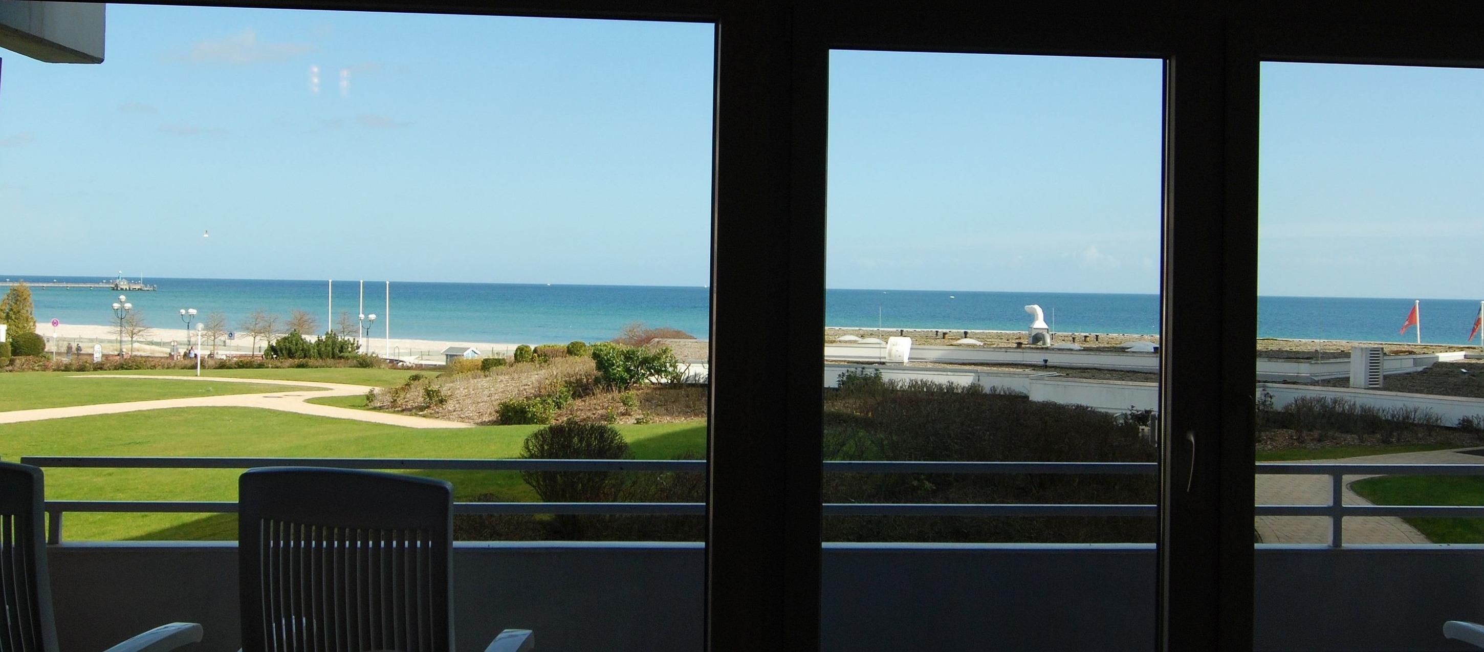 Gemütliche Ferienwohnung mit Seeblick, Balkon, Schwimmbad und Sauna in Grömitz, nur 20 Meter vom Ostseestrand entfernt.