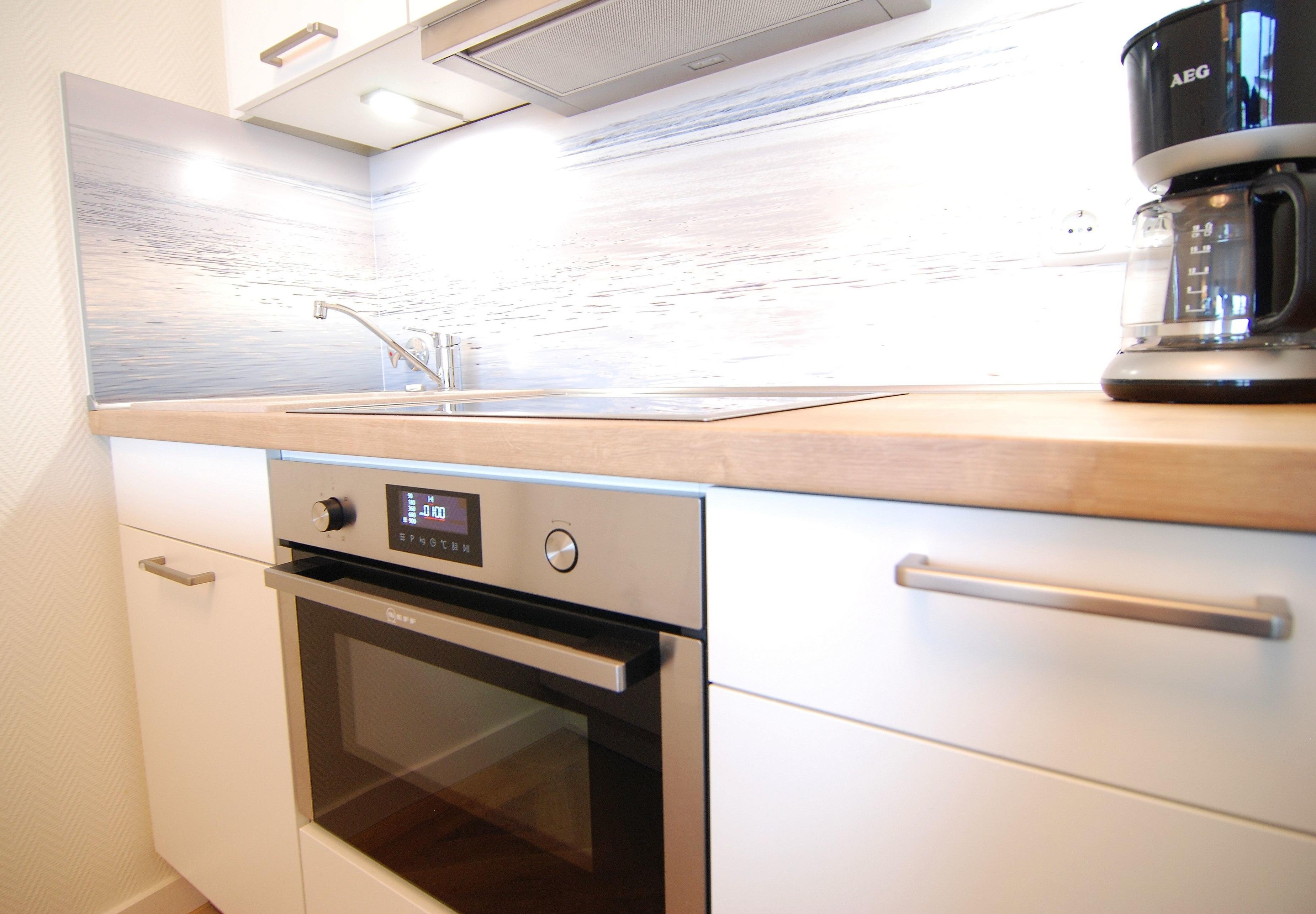 Neue Einbauküche mit Backofen mit integrierter Mikrowelle, Geschirrspüler.