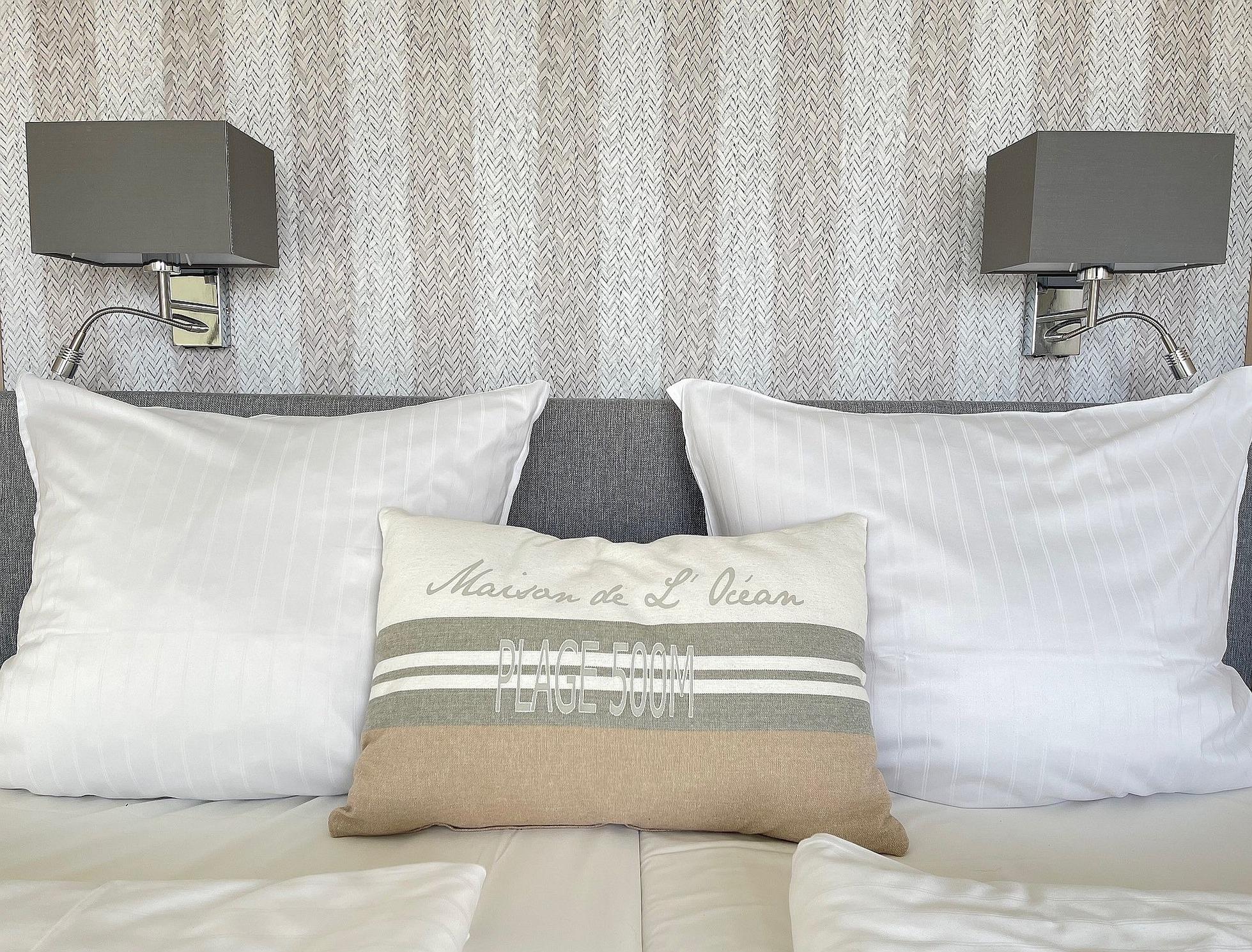 Das Schlafzimmer hat direkten Blick auf das Meer und ist mit Doppelbetten (Boxspringbett, 2 x 90 cm X 2,00 m) ausgestattet.
