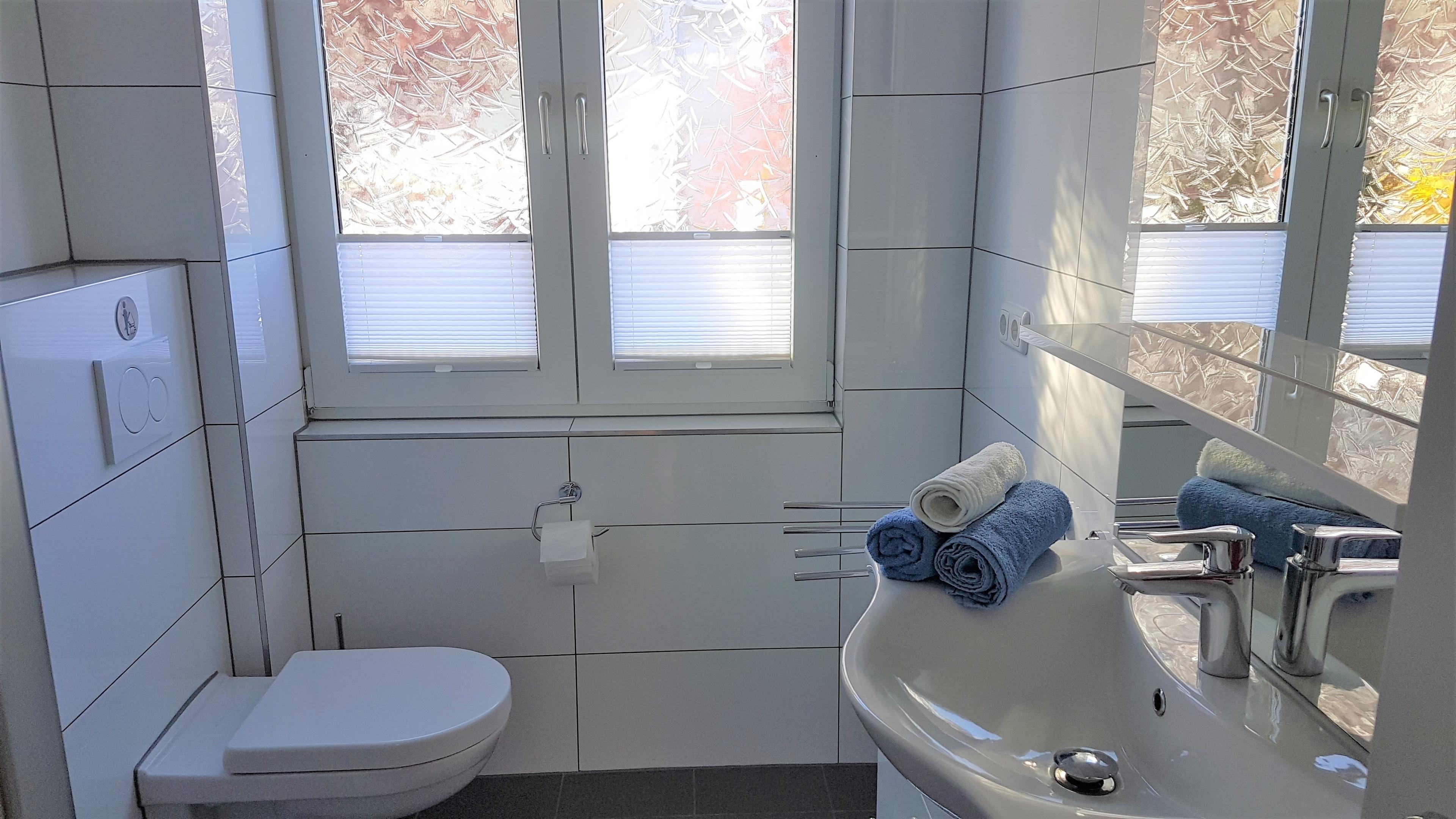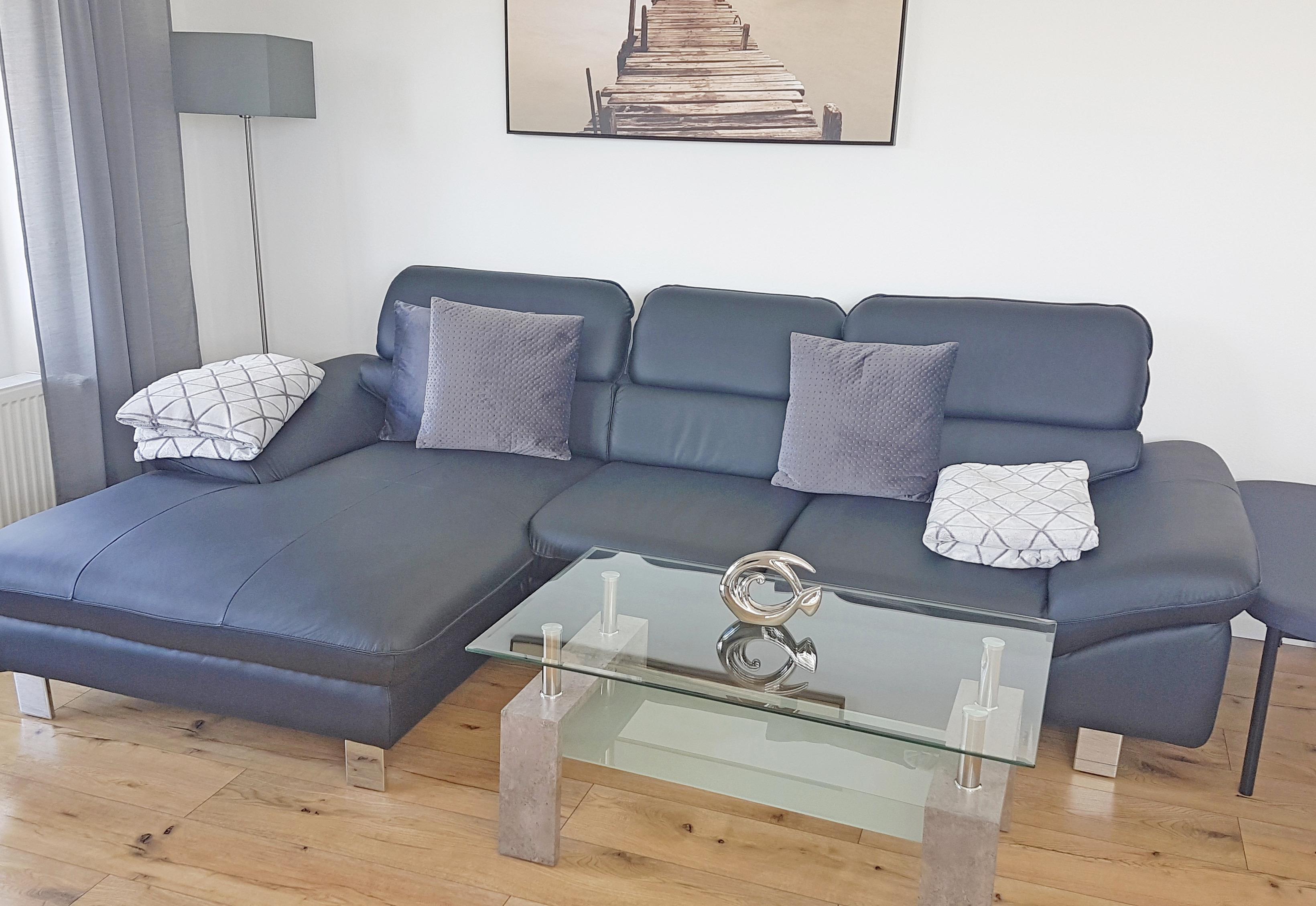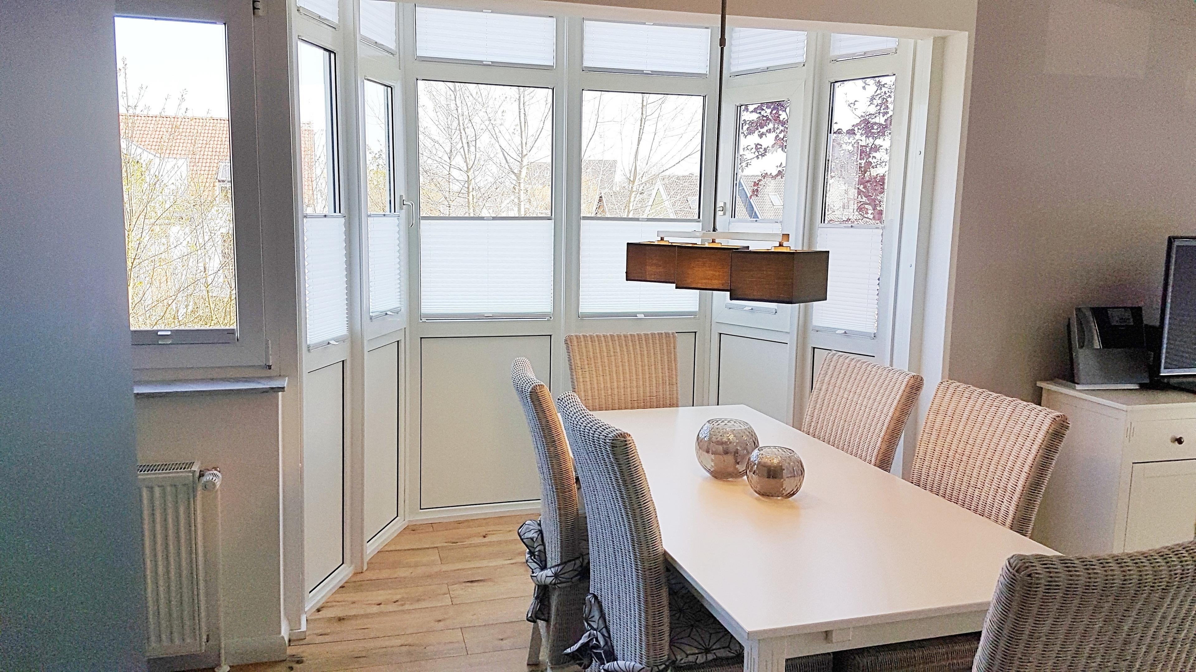 Die 100 qm große, moderne mit Designerfußboden komfortabel ausgestattete Wohnung erstreckt sich auf zwei Ebenen; ideal für Familien und Gruppen bis zu sechs Personen. Die Etagen sind jeweils durch eigene Wohnungstüren zu erreichen und mit einer Holztreppe verbunden. Hier sorgt ein Türschutzgitter für Sicherheit. Im oberen, wie auch im unteren Bereich befinden sich jeweils zwei Tageslicht-Duschbäder mit großem Waschtisch und Haartrockner. Der Hauswirtschaftsraum verfügt über eine eigene Waschmaschine und Trockner; hier können Sie bequem während Ihres Aufenthaltes Ihre Wäsche waschen und sind nicht auf öffentliche Geräte angewiesen. Ein Bügelbrett und Bügeleisen stehen Ihnen hier natürlich auch zur Verfügung. Bei Bedarf steht Ihnen ein Kinderreisebett, eine Wickelauflage oder ein Bollerwagen zur Verfügung. Angrenzend befindet sich das moderne Schlafzimmer; ausgestattet mit Boxspringbett, großzügigem Kleiderschrank und Flachbild-TV. Hier gibt es einen direkten Zugang zu einer eigenen Terrasse. Das Schlafzimmer mit Stockbetten verfügt über ein Smart TV; im oberen sowie im unteren Bereich befinden sich in den Schlafzimmern bequeme Boxspringbetten in der Größe 180 x 200 cm, diese sind mit Topperauflagen versehen. Ihre Mahlzeiten können Sie im hellen, verglasten Erker zu sich nehmen. Hier finden alle Gäste Platz an einem modernen Esstisch. Die offene, neue und moderne Küche verfügt über eine Komplettausstattung, wie z.B. Cerankochfeld, Backofen, Mikrowelle, Kühl- und Gefrierschrank und vieles mehr. Von der Küche und dem Essbereich geht es in den Wohnbereich über. Einen entspannten Fernsehabend mit Flachbild-TV, Kabelanschluss und DVD-Player genießen Sie auf der modernen Couch. Von hier geht es auf den Balkon. Bei Bedarf spendet eine Markise Schatten und der Weber-Gas-Grill steht Ihnen und Ihrer Familie zur Verfügung. Hier nehmen Sie Platz auf bequemen Loungemöbel. Die WLAN-Verbindung beträgt 32 MBit/s. Ein PKW-Stellplatz ist zum Haus gehörig. Haustiere sind leider nicht erlaubt. Wäschepakete gerne auf Anfrage.