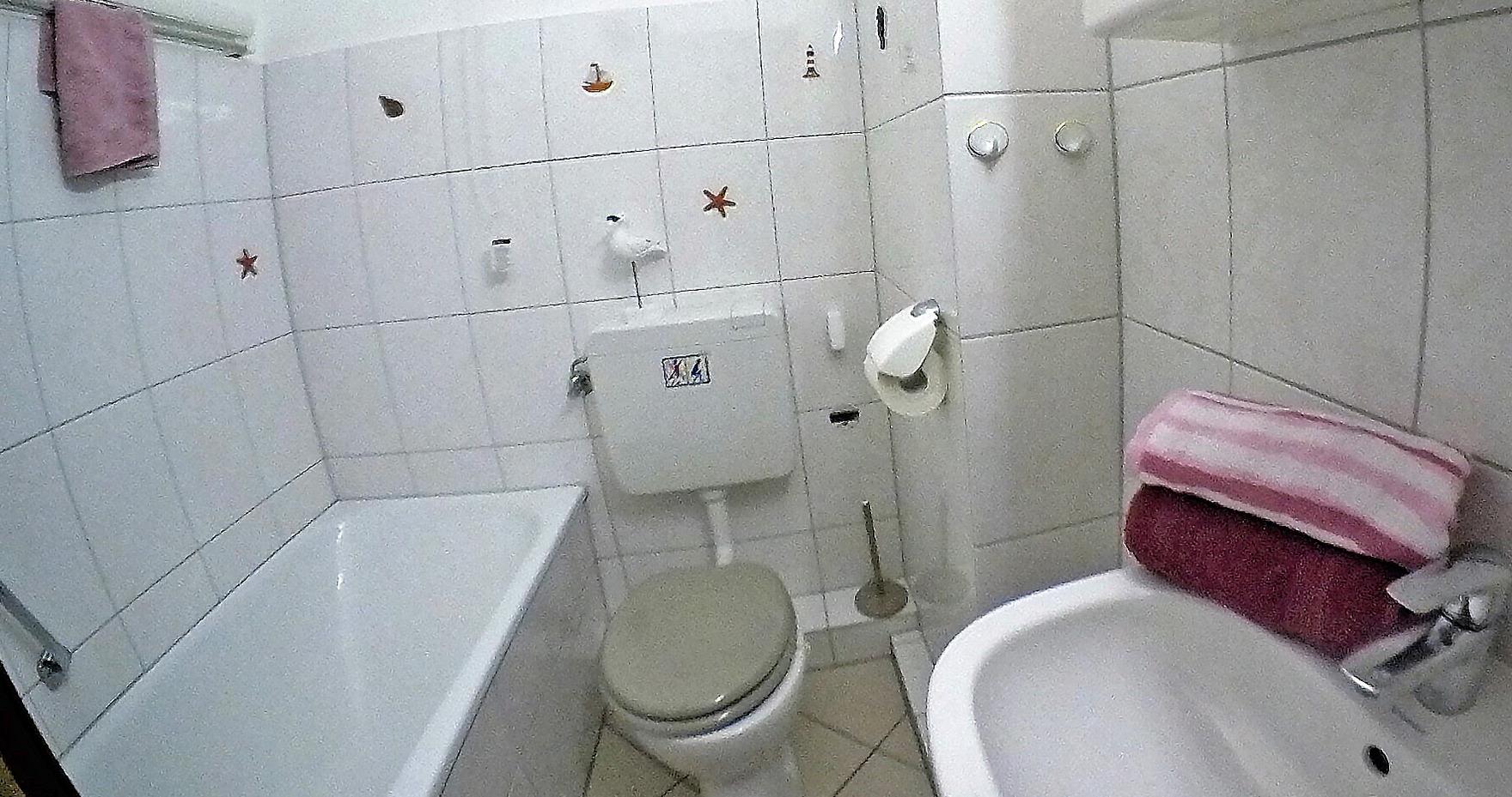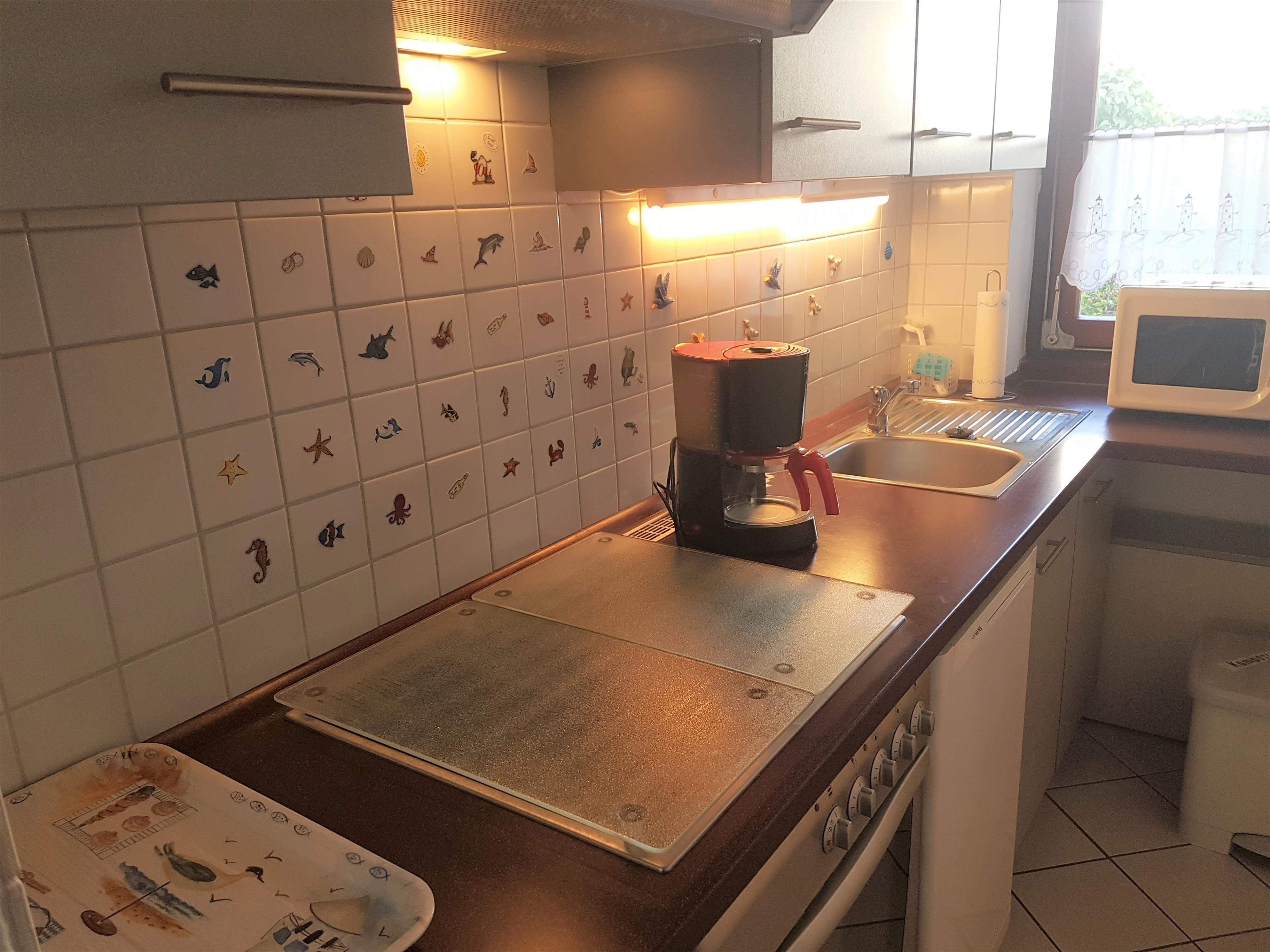 Die Eingangsbereiche der Wohnung befinden sich im Hochparterre sowie im Souterrainbereich. Somit haben Sie zwei komfortable Zugänge zur Wohnung. Im Hochparterre befindet sich ein Schlafzimmer mit Doppelbett sowie ein geräumiger Kleiderschrank. Die vollausgestatte Küchenzeile verfügt über einen Ceranherd mit Backofen, Kühlschrank sowie den üblichen Küchenutensilien. Im gemütlichen, großzügigen Wohnzimmer befindet sich ein Sofa, ein Flachbild-TV, eine Stereoanlage und ein Esstisch mit Platz für vier Personen. Vom Wohnzimmer gelangen Sie auf den Balkon mit Markise; von hier können Sie den herrlichen Ausblick in den Garten genießen. In den großzügigen Souterrainbereich gelangen Sie über eine Wendeltreppe. Hier finden Sie einen freundlichen Wohn-/Schlafbereich, Sitzmöbel und ein Flachbild-TV. Ein Kleiderschrank bietet reichlich Stauraum. Die Wohnung ist mit elektrischen Rollläden ausgestattet. In wenigen Minuten gelangen Sie fußläufig zu den nächsten Einkaufsmöglichkeiten. Der Strand liegt ca. 1500 m entfernt. Ein Außenstellplatz ist für Sie direkt am Haus reserviert. Bettwäsche / Handtücher können auf Anfrage hinzugebucht werden. Hunde auf Anfrage. Es handelt sich um eine Nichtraucherunterkunft.