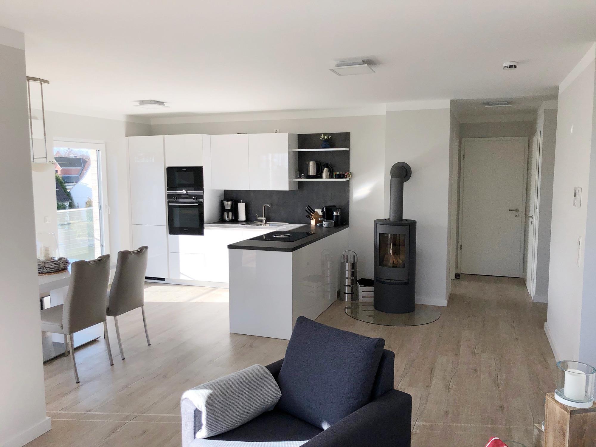 Moderne Ferienwohnung in Grömitz mit Ostseeblick, Sauna, Kamin und Balkon, nur wenige Schritte vom Strand entfernt.