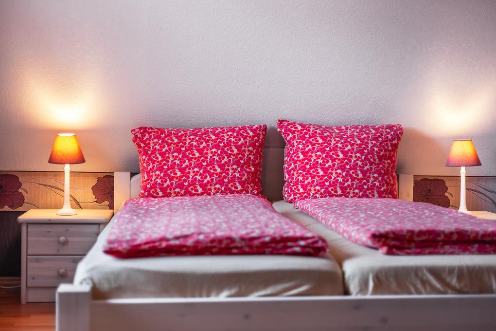 Das Eltern- und Kinderschlafzimmer befinden sich im 1.Stock des Ferienhauses. Im großen Elternschlafzimmer übernachten Sie in einem gemütlichen französischen Bett (160x200). Im Kinderzimmer finden Sie zwei bequeme Einzelbetten (90x200). Eine bequeme Schlafcouch dient hier als zusätzliche Aufbettungsmöglichkeit, z. B. für ein drittes Kind.