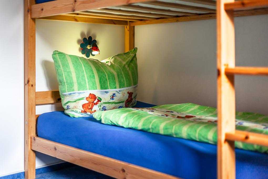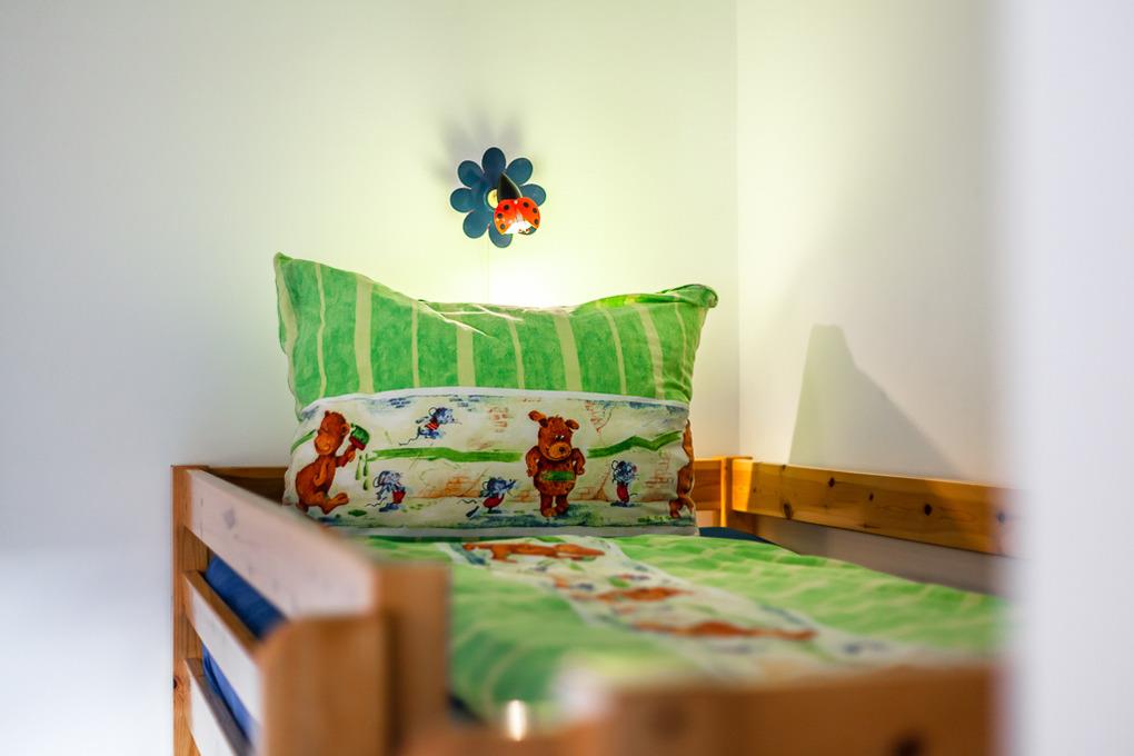 Im Kinderzimmer, die Fenster sind selbstverständlich zu verdunkeln, finden Sie 2 bequeme Stockbetten (90x200cm).