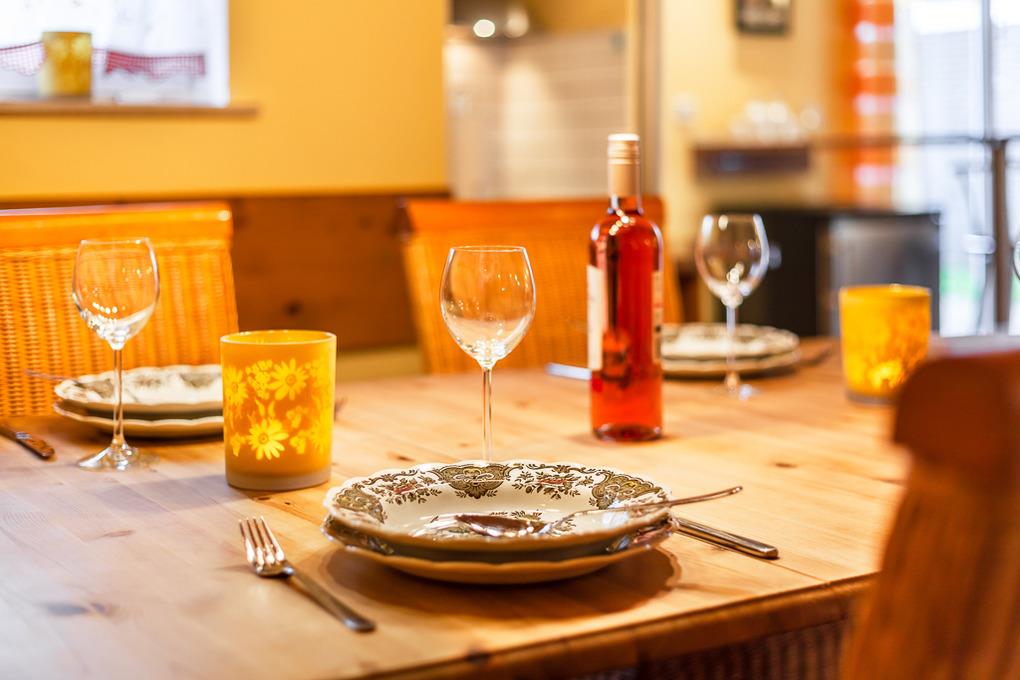 Die sehr komplettierte Küchenausstattung beinhaltet auch ein Fondue und Raclett-Set für regnerische und kältere Abende bei Kerzenschein!