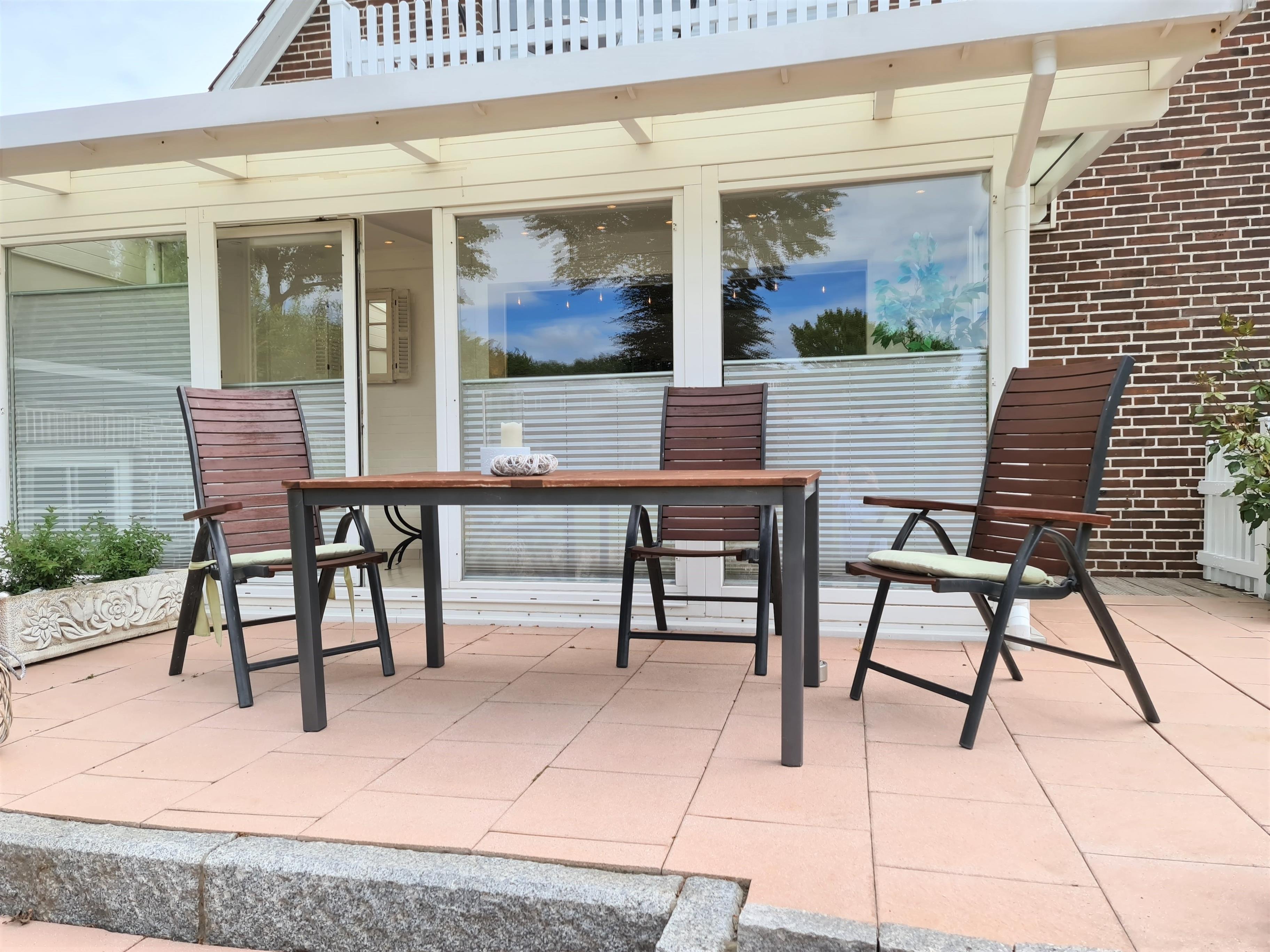 Gemütliche 2-Zimmer-Ferienwohnung in Grömitz mit großer Terrasse und Gartennutzung, nur wenige Gehminuten vom Strand entfernt.