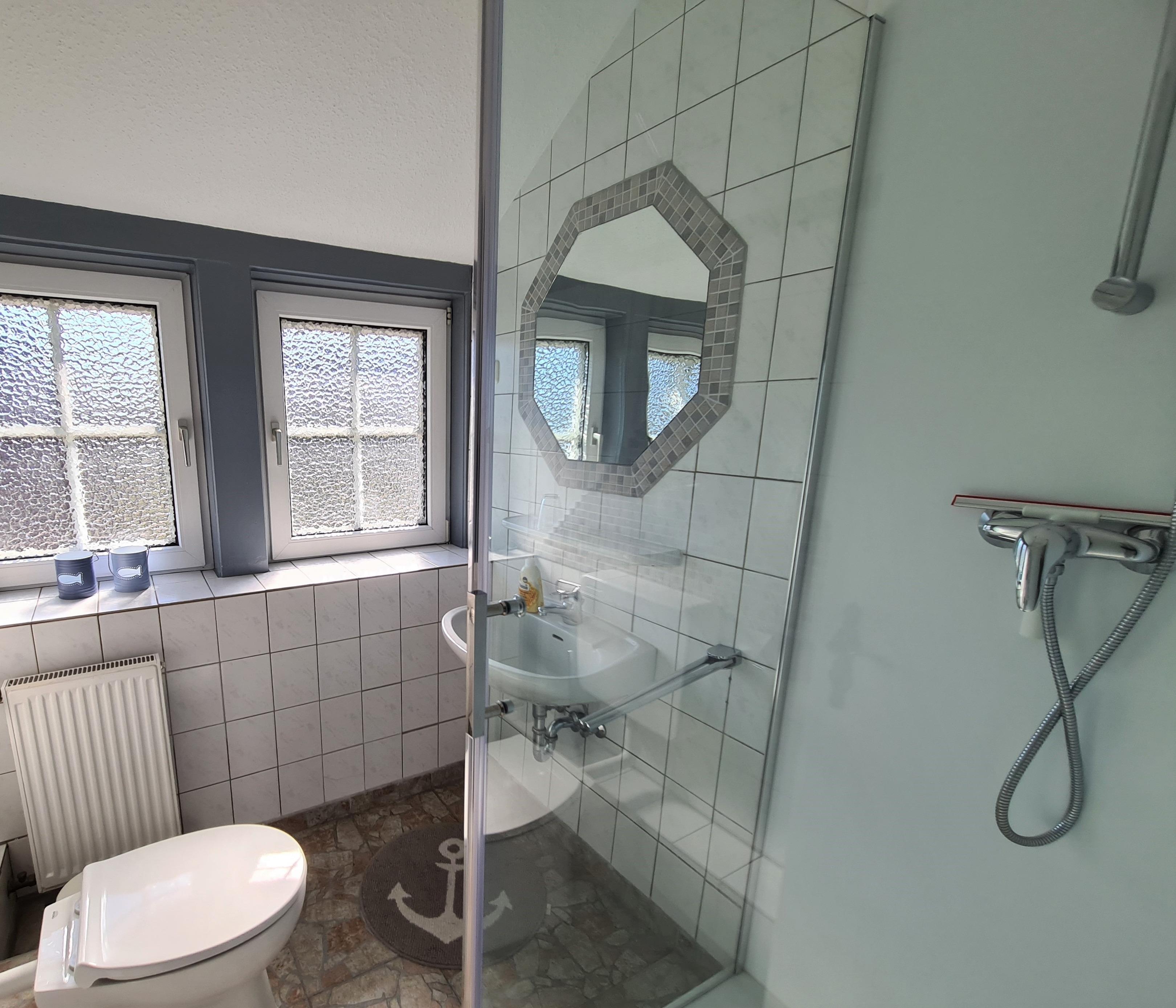 Sie möchten gerne mit 3, 4 oder auch 5 Personen anreisen? Kein Problem, für die Unterkünfte Bootshaus 1-5 bieten wir Ihnen, nach Verfügbarkeit, zusätzlich im gleichen Haus eine preiswerte Übernachtungsmöglichkeit für bis zu 3 weitere Personen an. Die Räumlichkeiten befinden sich im Souterrain und bestehen aus einem Schlafzimmer mit einem Einzelbett, einem Schlafzimmer mit einem Doppelbett (160x200), einem Kleiderschrank, einer Kommode, einem großen Flachbild-TV sowie einem Duschbad mit Waschbecken und WC.