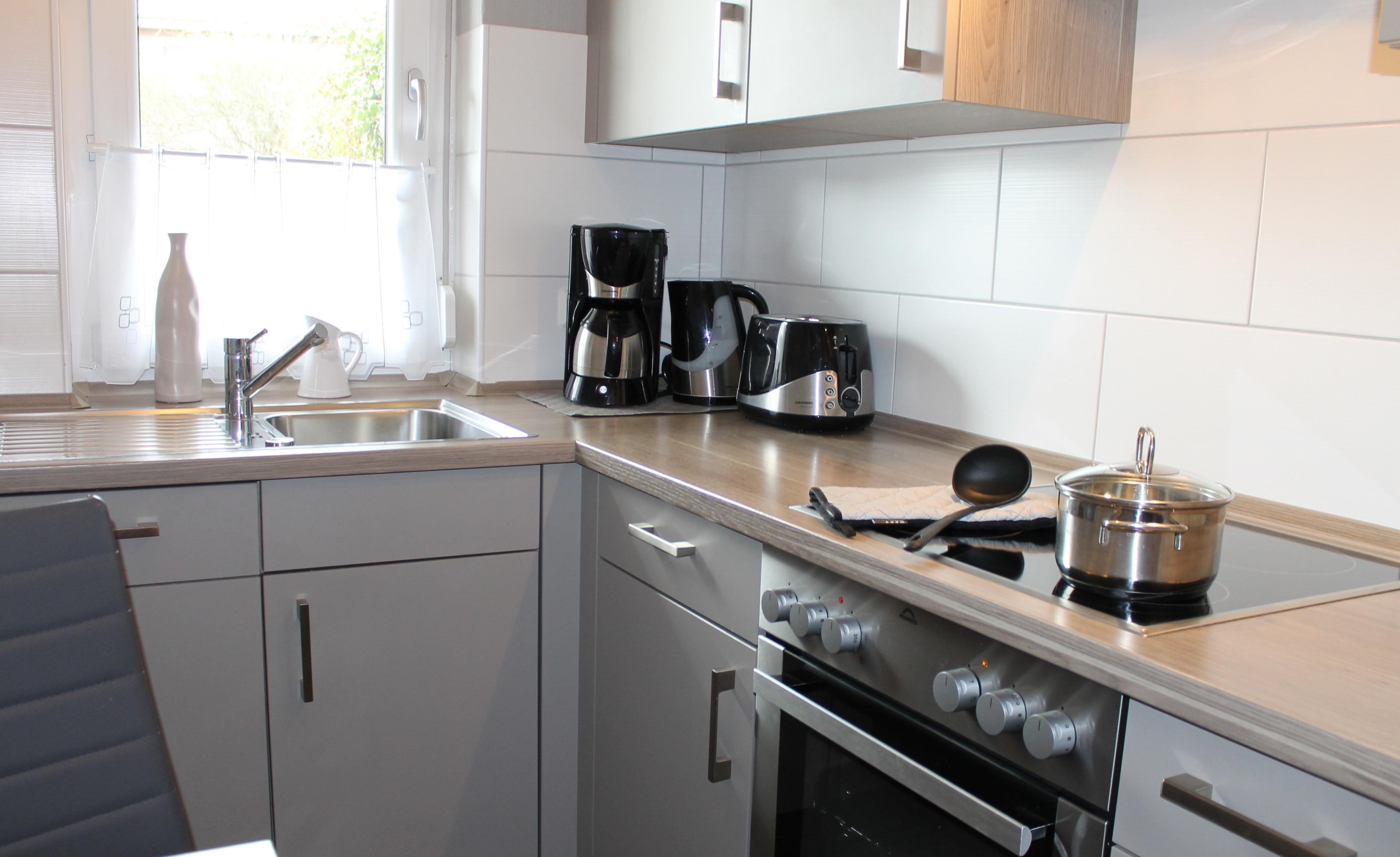 Die Wohnfläche des ca. 35 m² großen Appartements verteilt sich auf ein Wohn-/Schlafzimmer, eine separate Küche sowie auf ein Badezimmer. Der Wohnbereich ist mit einer gemütlichen Sitzecke mit Sessel und einem Flachbild-TV versehen, das Schlafsofa hat eine Liegefläche von 1,60 x2 m. Vom Wohnraum aus gelangen Sie auf die geschützte und möblierte Westterrasse mit ein wenig Grünfläche. Das Tageslichtbad ist mit Waschtisch, WC und geräumiger Dusche mit gemauerter Sitzmöglichkeit versehen. Die offen gestaltete Küche ist u.a. mit Geschirrspüler, Dunstabzug, 4-er Ceranfeldherd, Backofen und den üblichen Kleingeräten sowie einem Essplatz für zwei Personen ausgestattet. Die Kleiderschränke sind im Flur untergebracht und bieten ausreichend Platz für Ihre Garderobe. WLAN steht Ihnen kostenlos zur Verfügung.