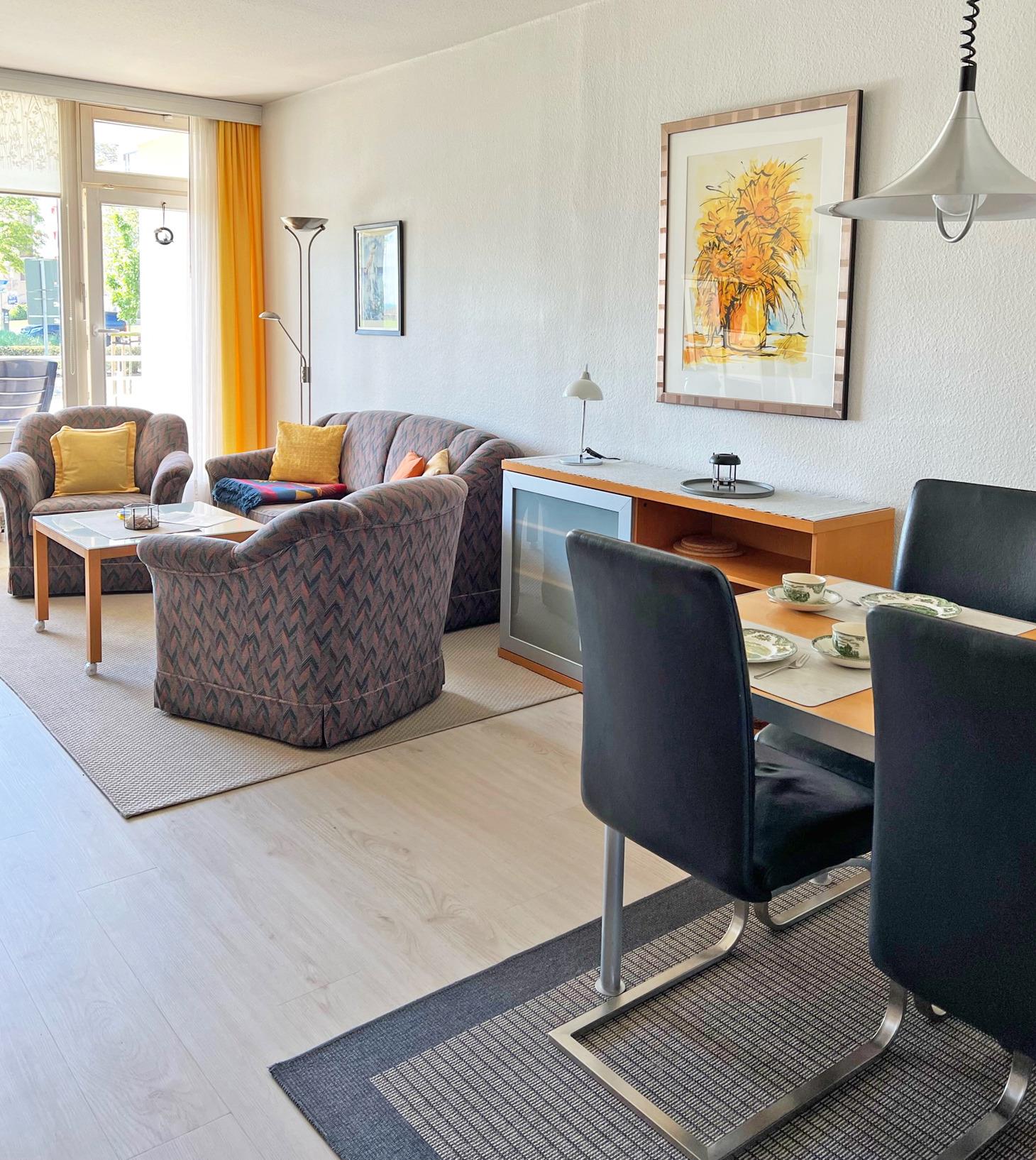 Ansprechende 2-Zimmer-Wohnung für bis zu 4 Personen im Hochparterre einer gepflegten, ruhig gelegenen Wohnanlage. Bis zum feinsandigen Strand sind es nur wenige Meter. Die helle, freundliche Unterkunft ist ca. 50 qm groß und bietet Ihnen ein Wohn-Schlafzimmer mit Flachbild-TV, ein Schlafzimmer mit Doppelbett (2x90x200),zum Flur mit einem Vorhang getrennt, Duschbad und eine voll ausgestattete Durchgangsküche. Die Wohnung ist mit Fliesen, bzw. Designerplanken ausgelegt. Ideal für Paare und geeignet für bis zu 4 Personen. Frühstücken Sie bei Meeresrauschen und genießen Sie den Sonnenuntergang auf Ihrem Balkon mit wundervollem Meerblick.