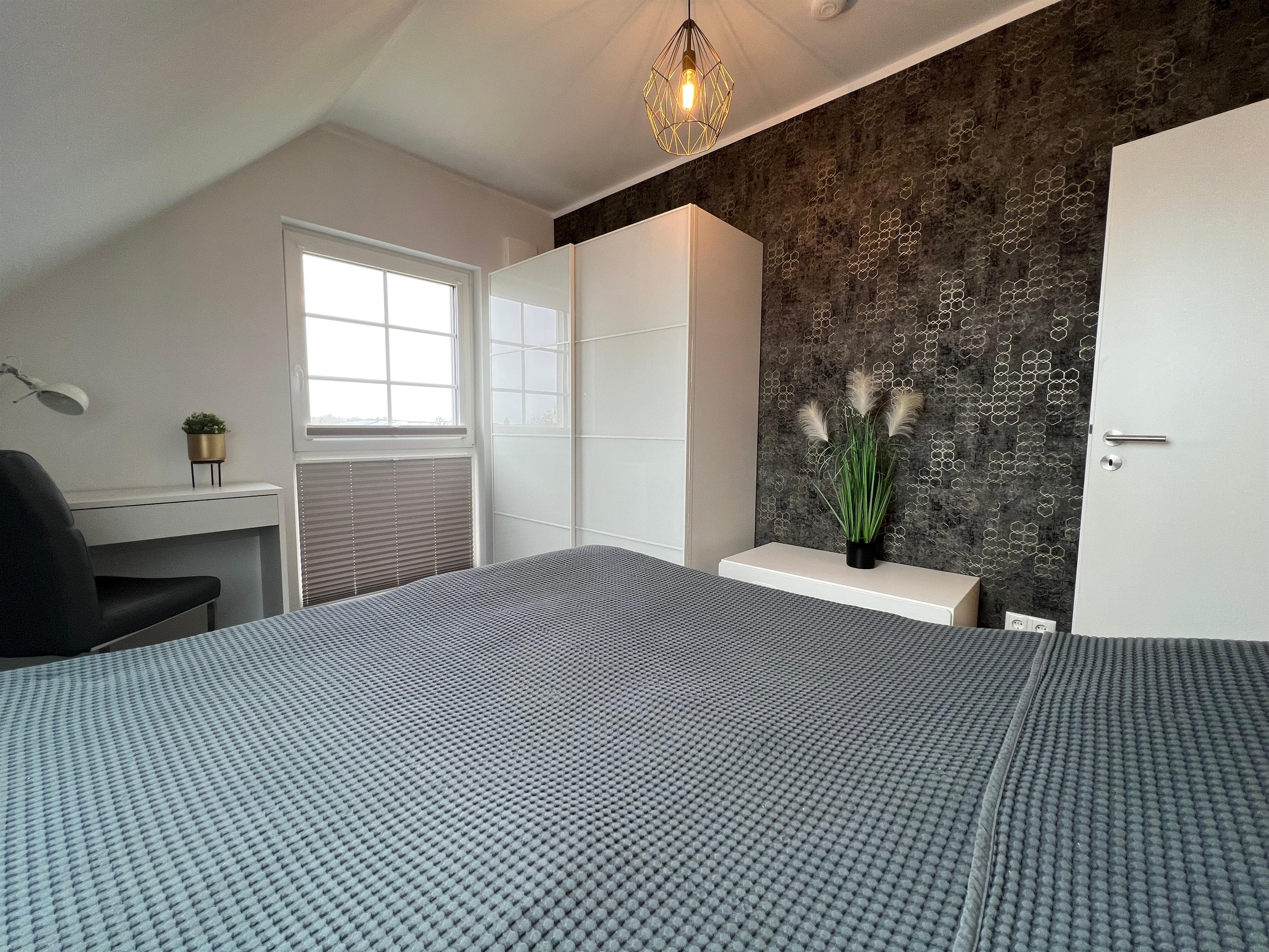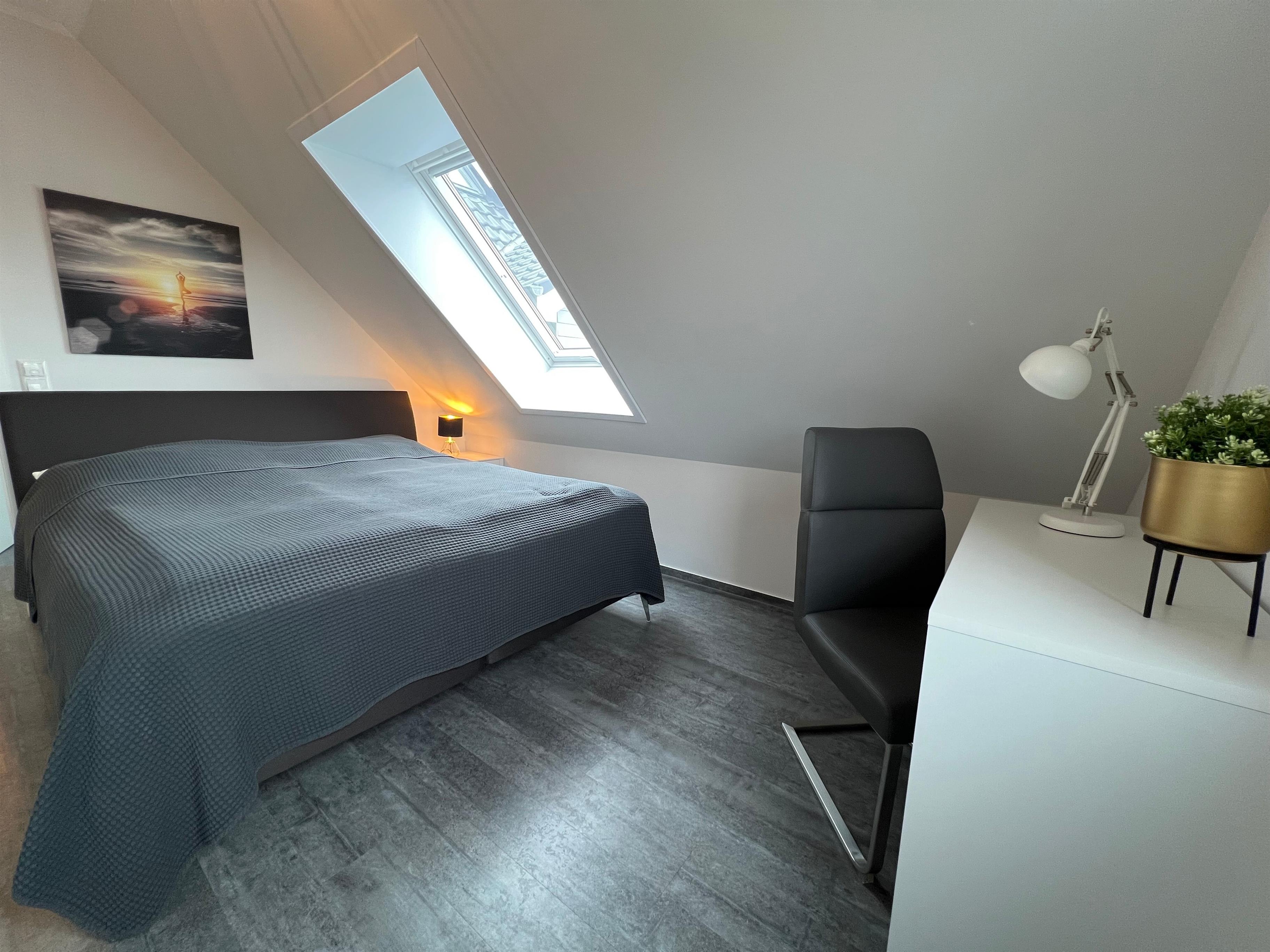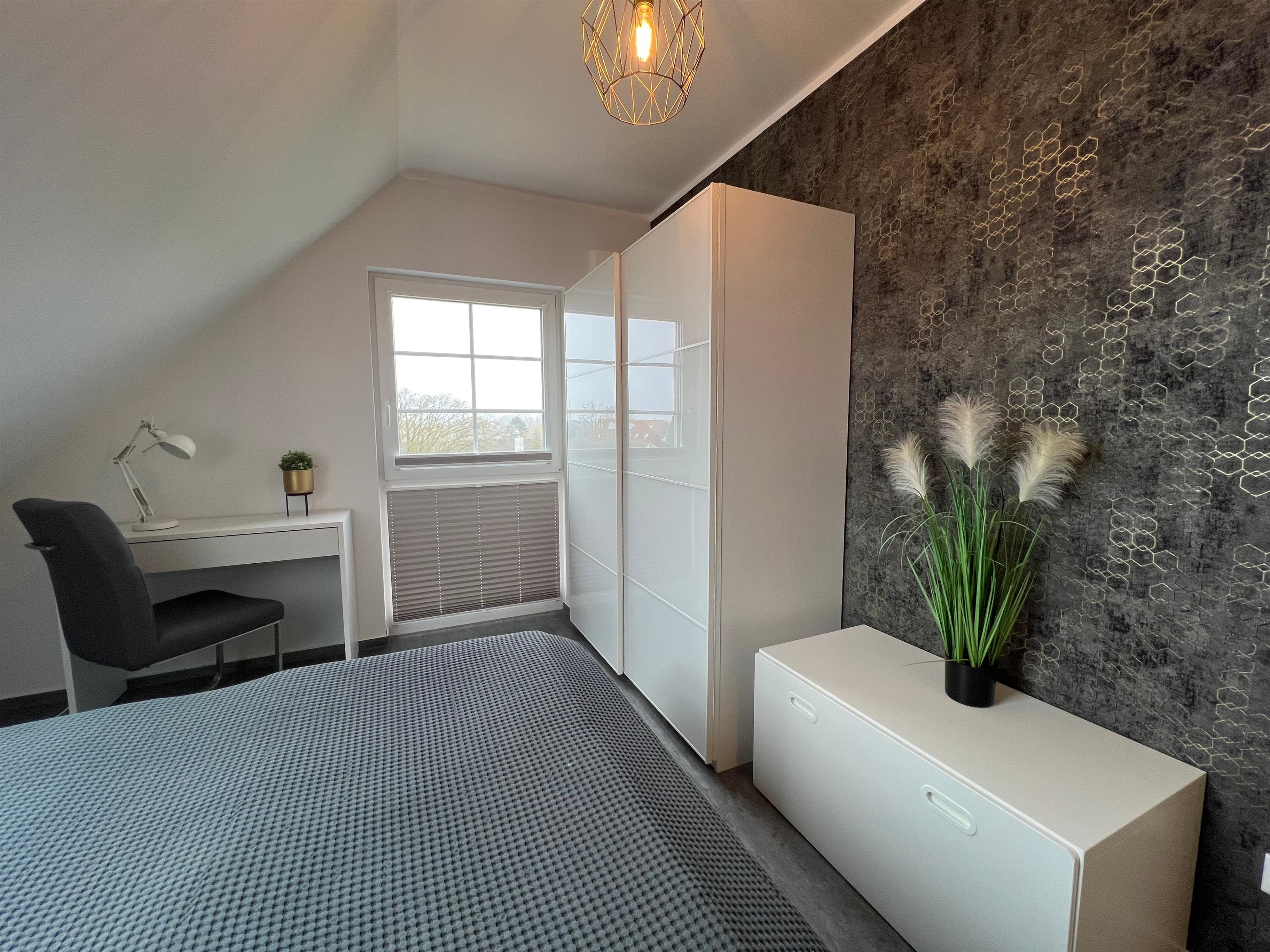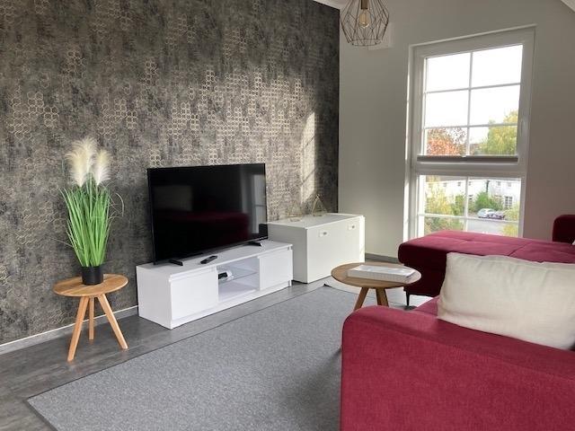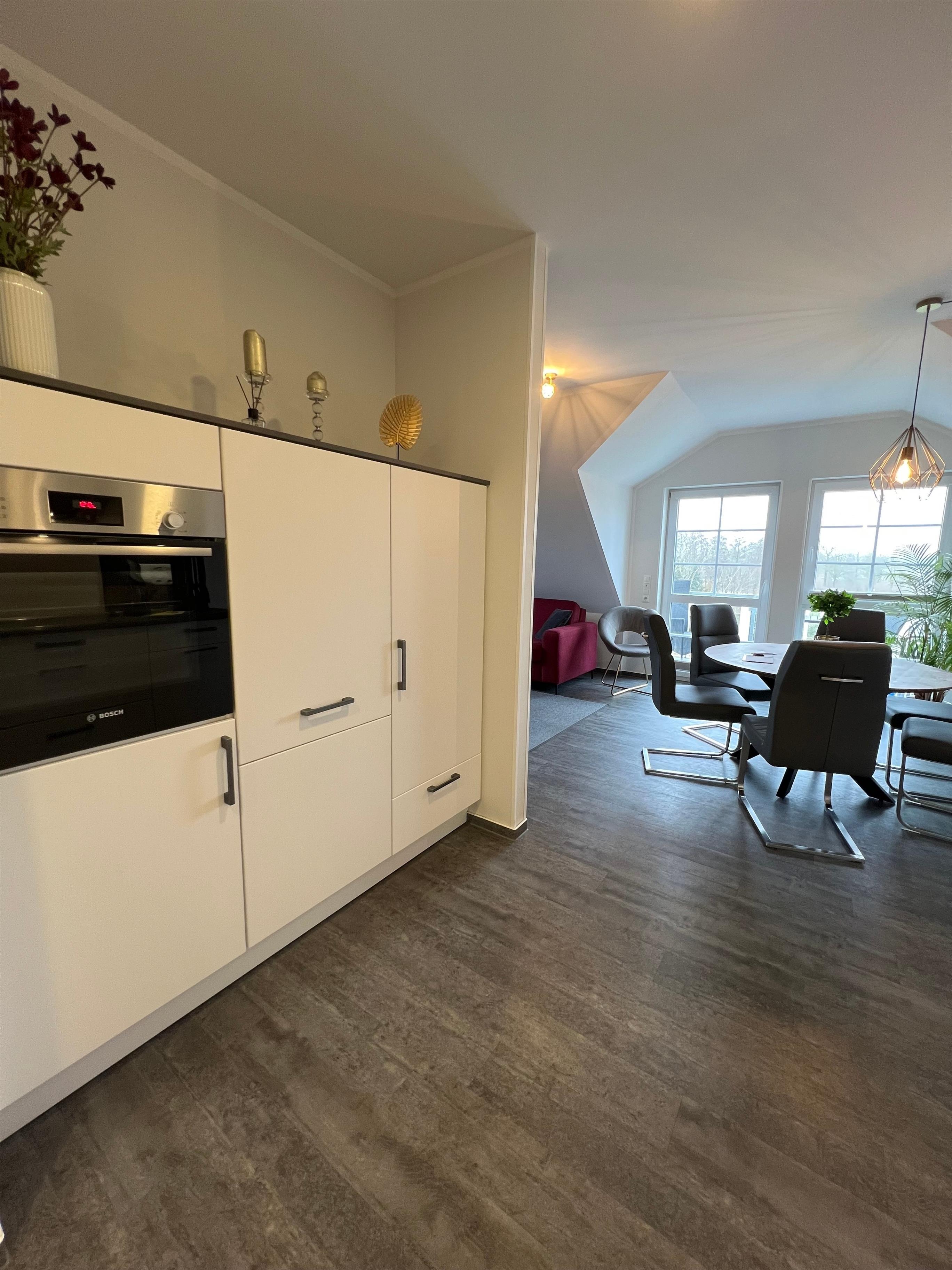 Das Appartement befindet sich im Dachgeschoss und ermöglicht einen weiten Blick über Grömitz bis zur Ostsee am Horizont. Dieses und der Stil des Retrolooks verleihen der Wohnung einen besonderen Charme. Im Wohn- und Essbereich finden Sie neben einem gemütlichen runden Tisch eine hochwertige Wohn/Schlafcouch (Liegefläche 160 x 190 cm) für zwei Personen. Es gibt neben einer voll ausgestatteten modernen offenen Küche zwei separate Schlafzimmer mit jeweils einem Boxspringbett (180cm x 200cm und 160cm x 200cm) und einem Kleiderschrank für Ihre Garderobe. Einen zweiten Flachbildfernseher finden Sie in einem dieser Schlafräume.
