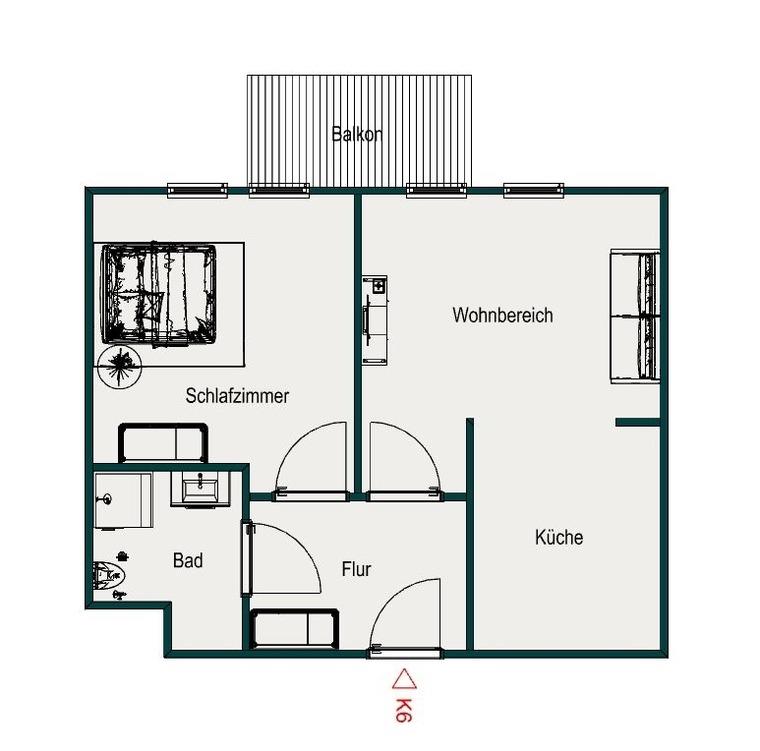 Die im Industrielook gestaltete Wohnung befindet sich im 1. Obergeschoss. Im Wohnbereich befindet sich neben einer hochwertigen Wohn-/Schlafcouch (Liegefläche 140x190 cm) ein Essplatz mit 4 bequemen Stühlen. Die offene moderne Küche ist voll ausgestattet und verfügt u.a. über einen Geschirrspüler, einen Herd mit Backofen, einen Kühlschrank, Wasserkocher, Kaffeeautomat und Toaster.