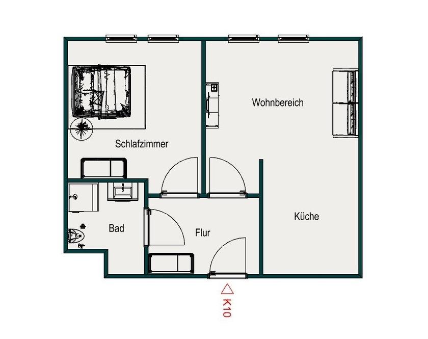 - Wohn-/Schlafzimmer, 16 m², 2 Personen