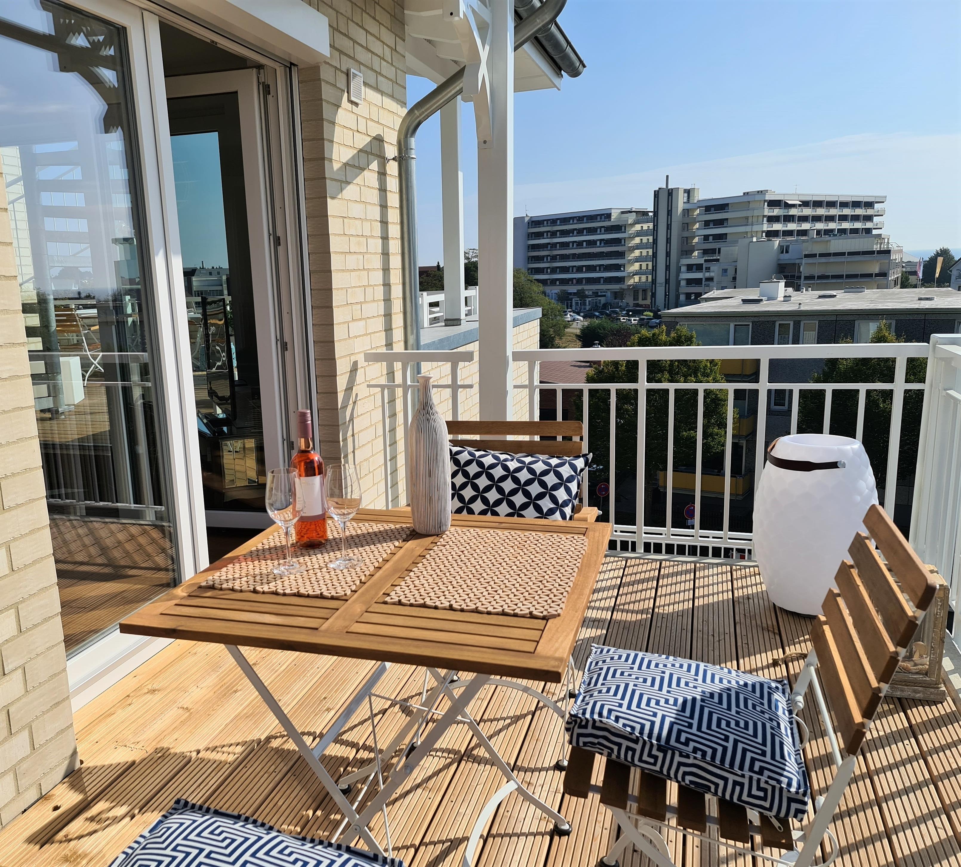 Exklusive Penthouse-Ferienwohnung in Grömitz mit Balkon, Terrasse und Meerblick, nur 200 m vom Ostseestrand entfernt.